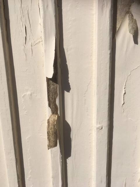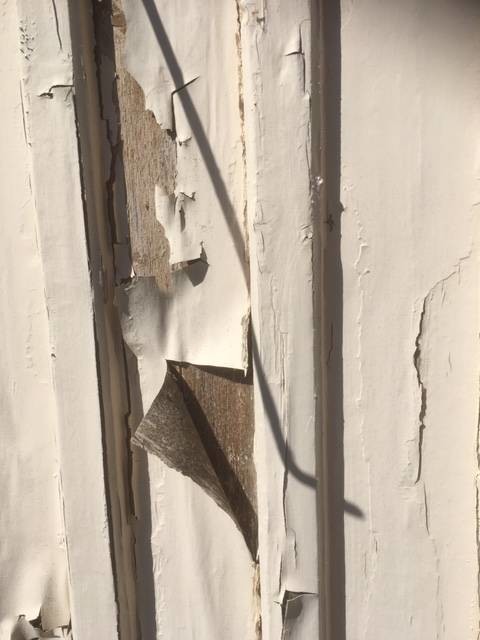 På solsidan släpper färgen i stora sjok och det följer även med fibrer från den underliggande panelen. Är detta vad som kallas linoljeblåsor och vad kan man göra för att få bästa resultat vid ommålning?