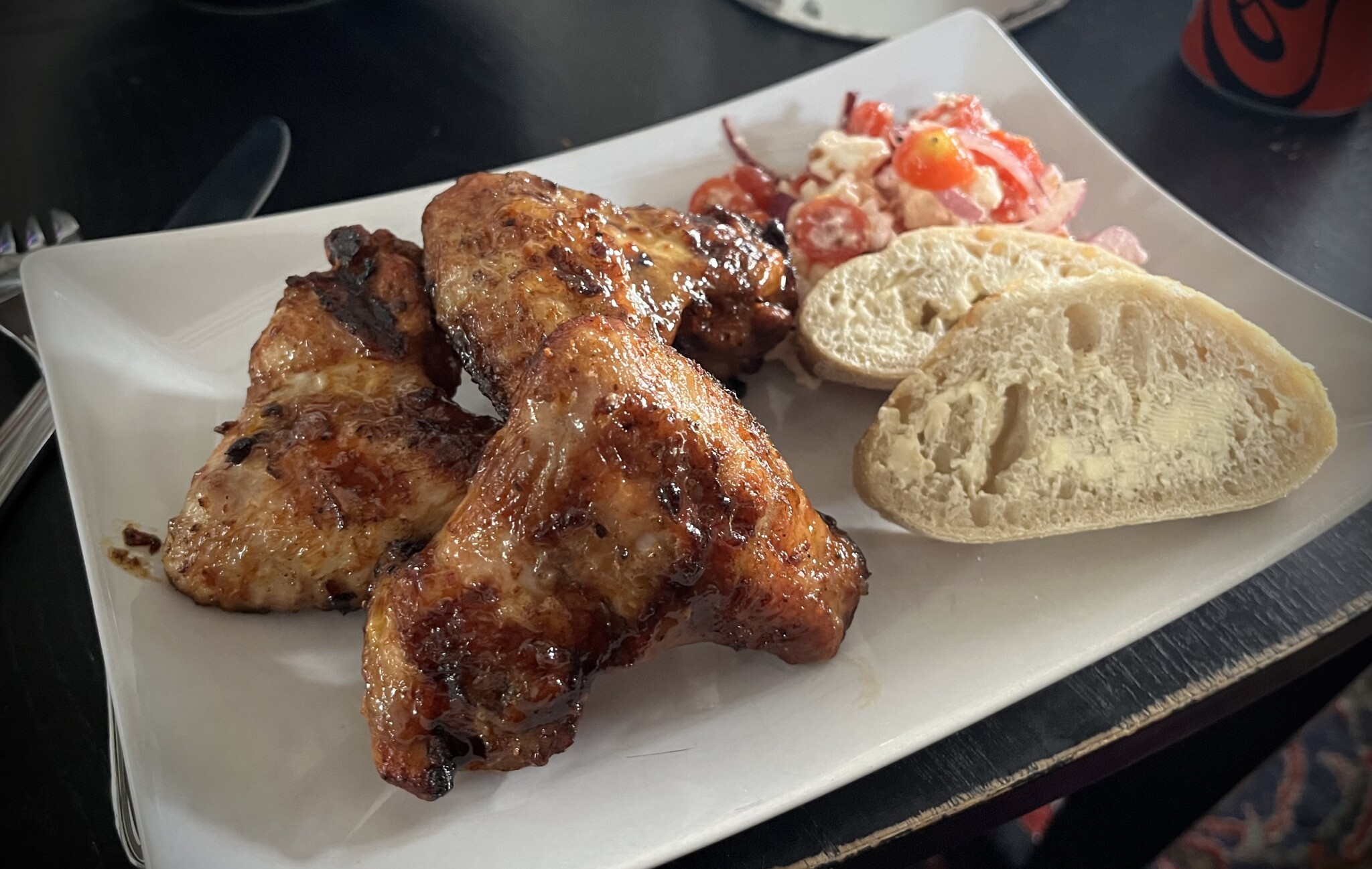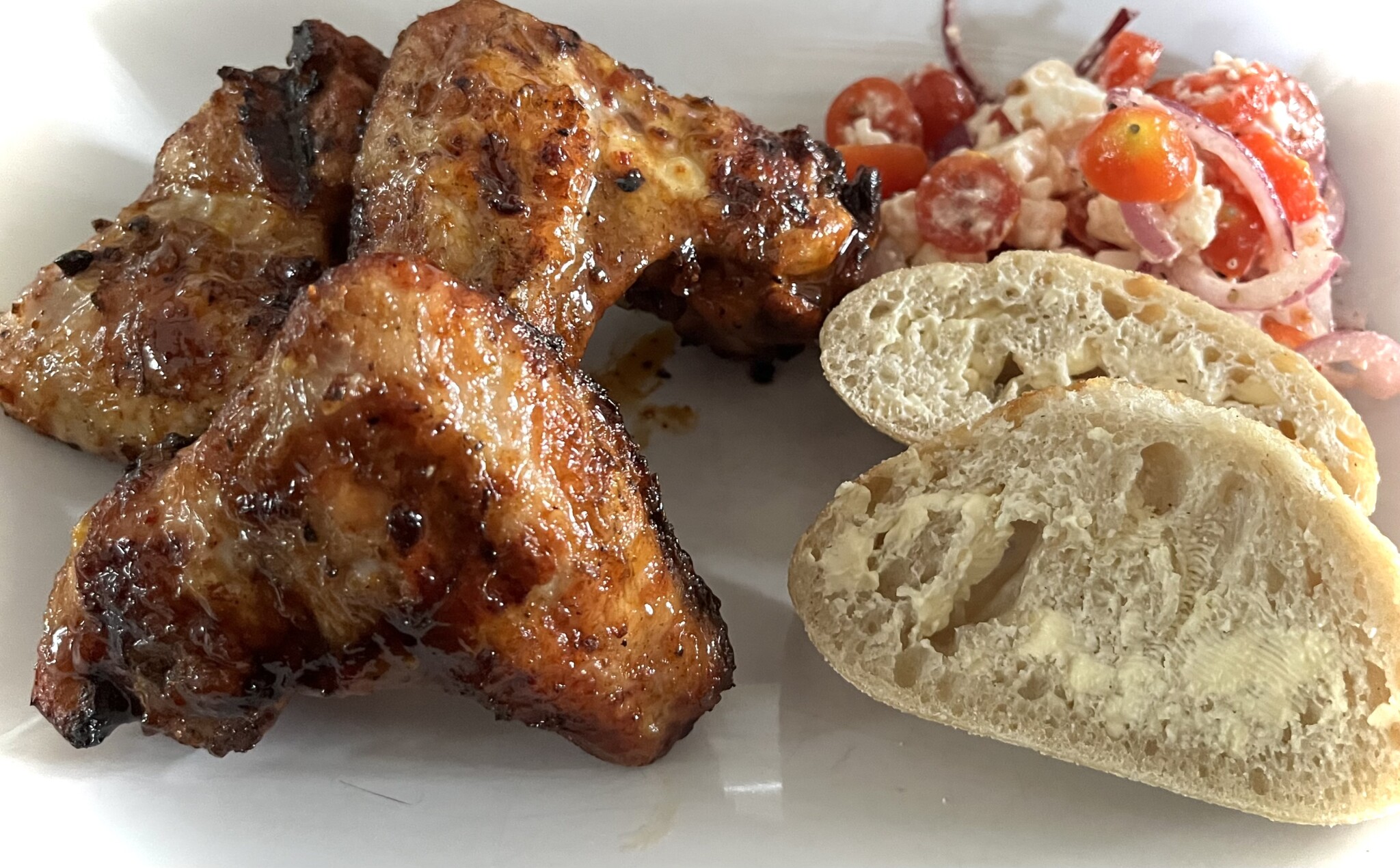 Grillade wings, surdegsbröd och fetaost/tomatsallad 👍