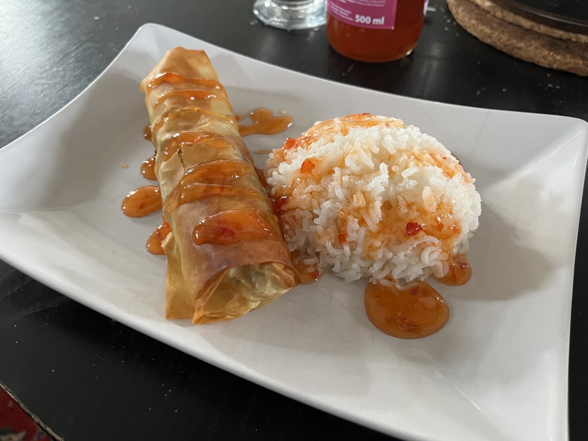 Ikväll gjorde jag egna VÅRRULLAR 👍😊 (filodeg) 🌸 serverades med ris och sweetchilisås !