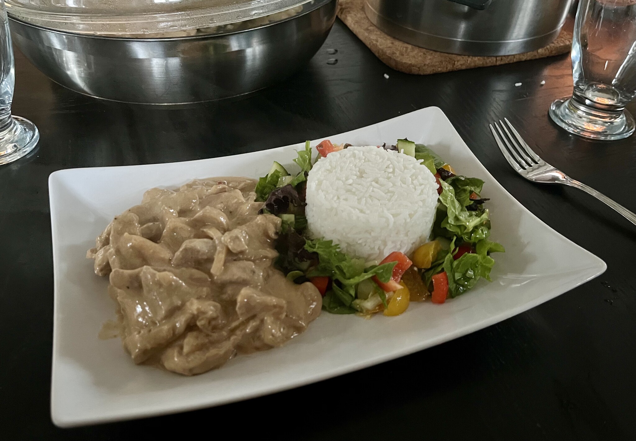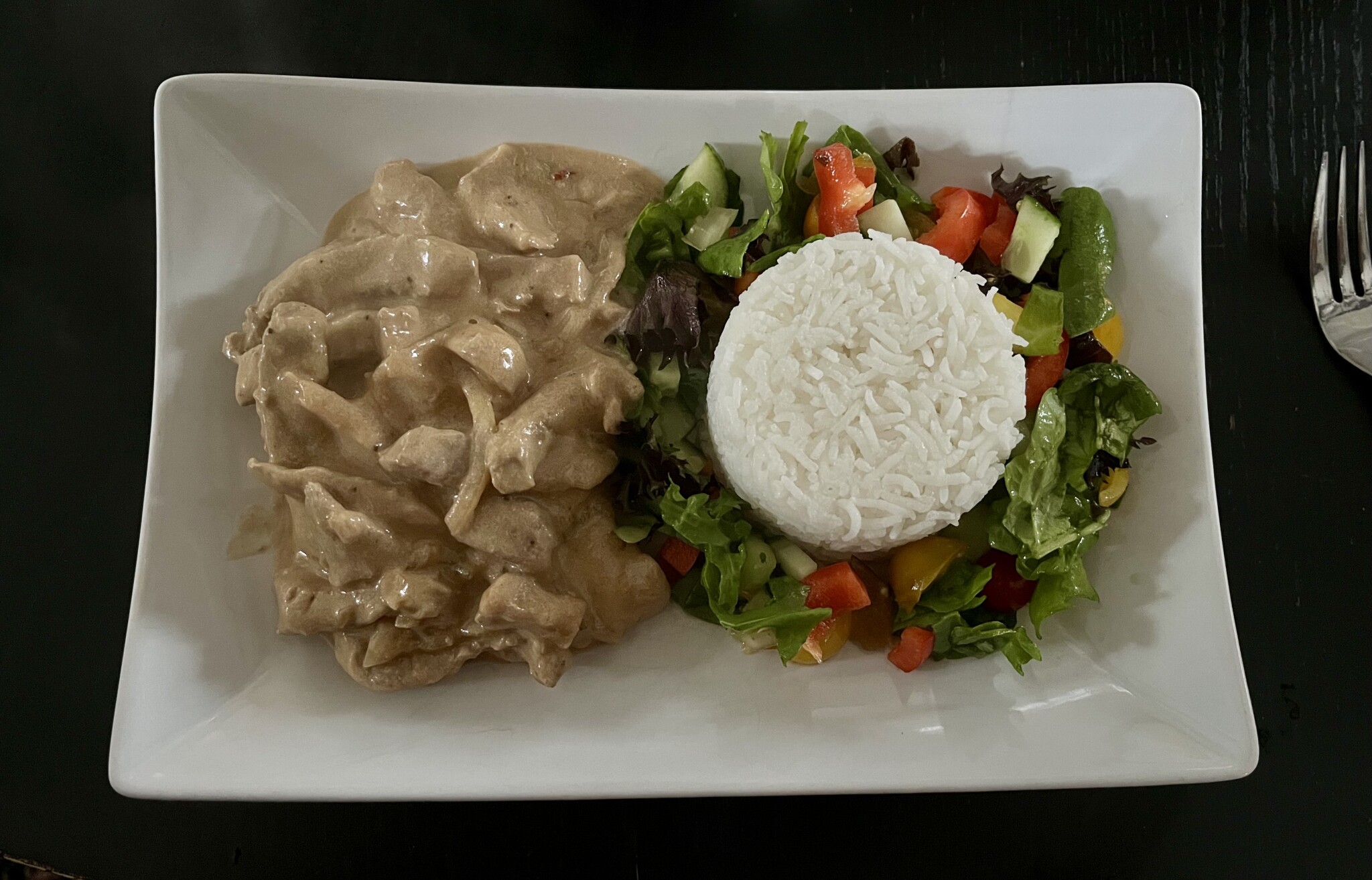 Serverat med ris och sallad