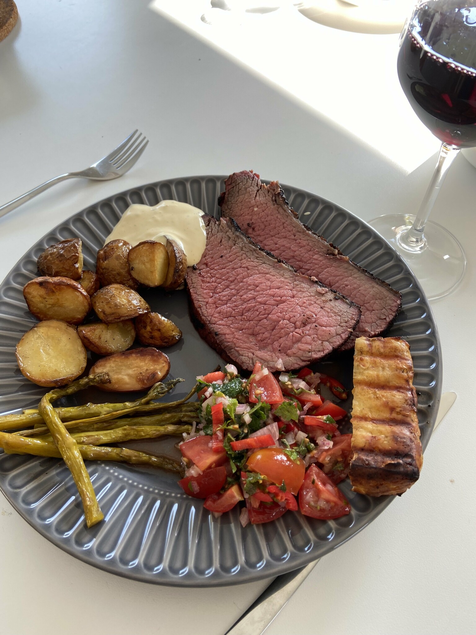 Idag blev det Picanha. Low and slow i mycket alrök. Rökt färskpotatis, rökt halloumi, grillad sparris och hemgjord chimchurri! Galet gott!