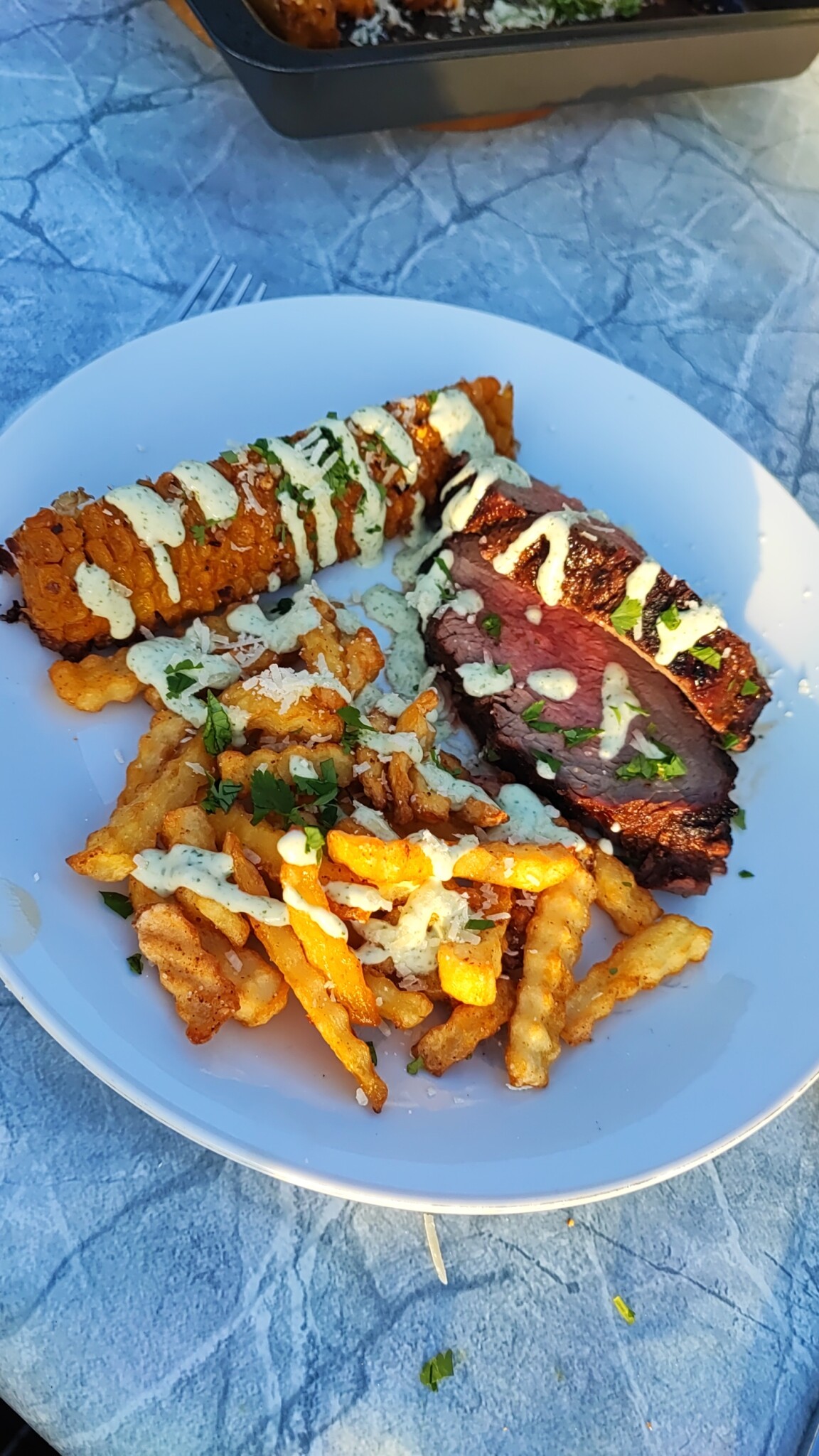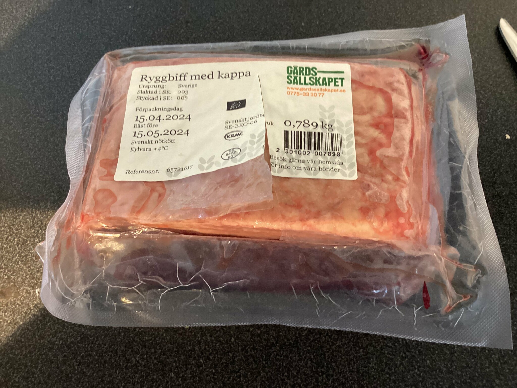 Ikväll blir det ryggbiff med kappa, köpe bea 😬, klyftpotatis, sparris och enkla grönsaksspett.