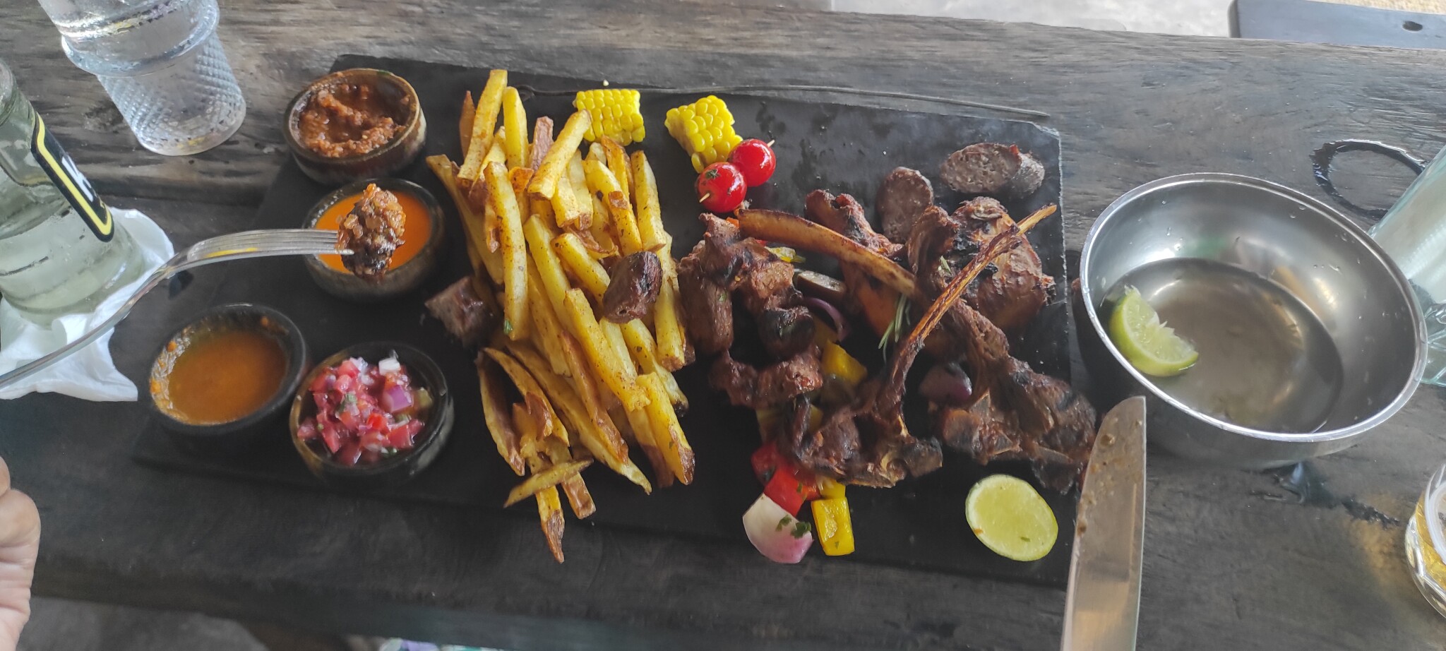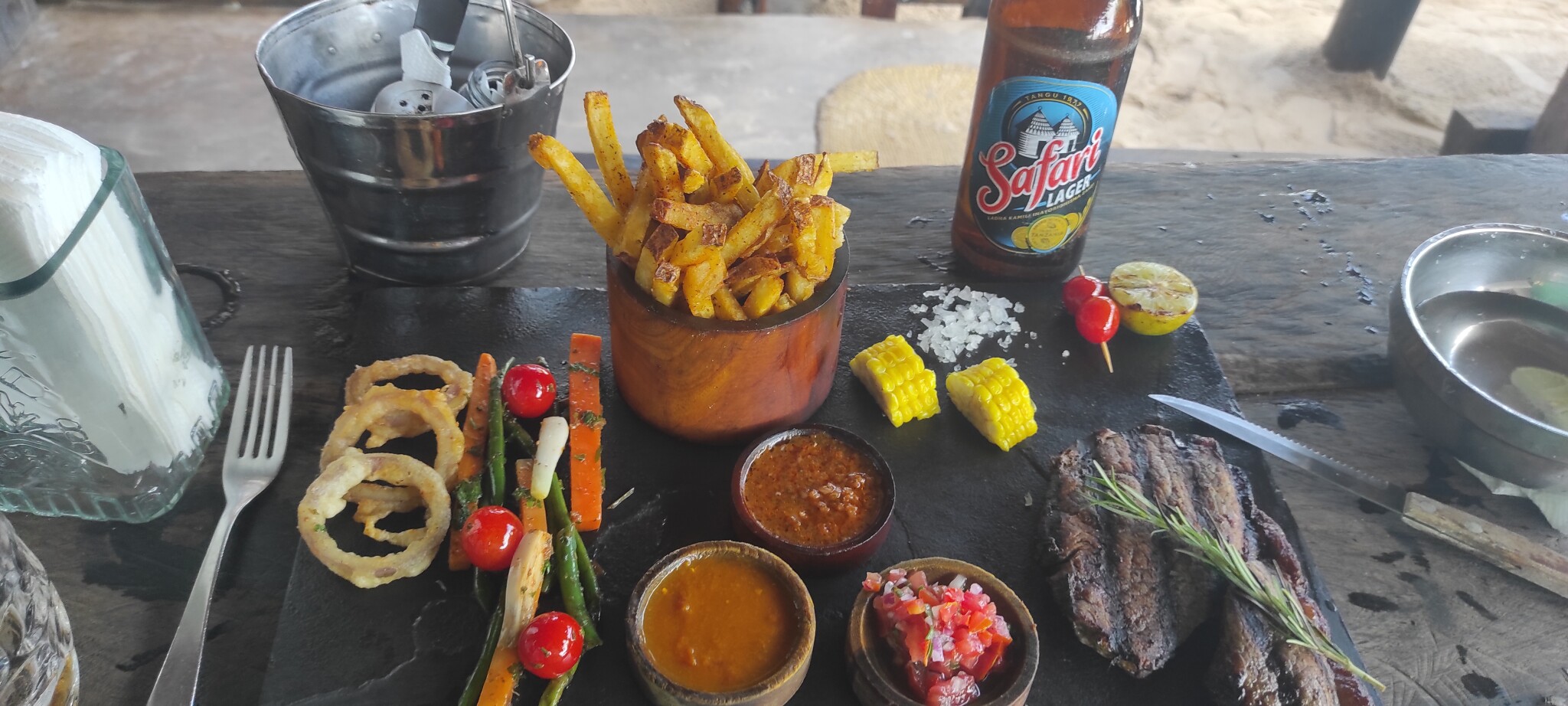 Frugans platter med biff, korv,kyckling,lamm 39000 tzs (140 kronor)