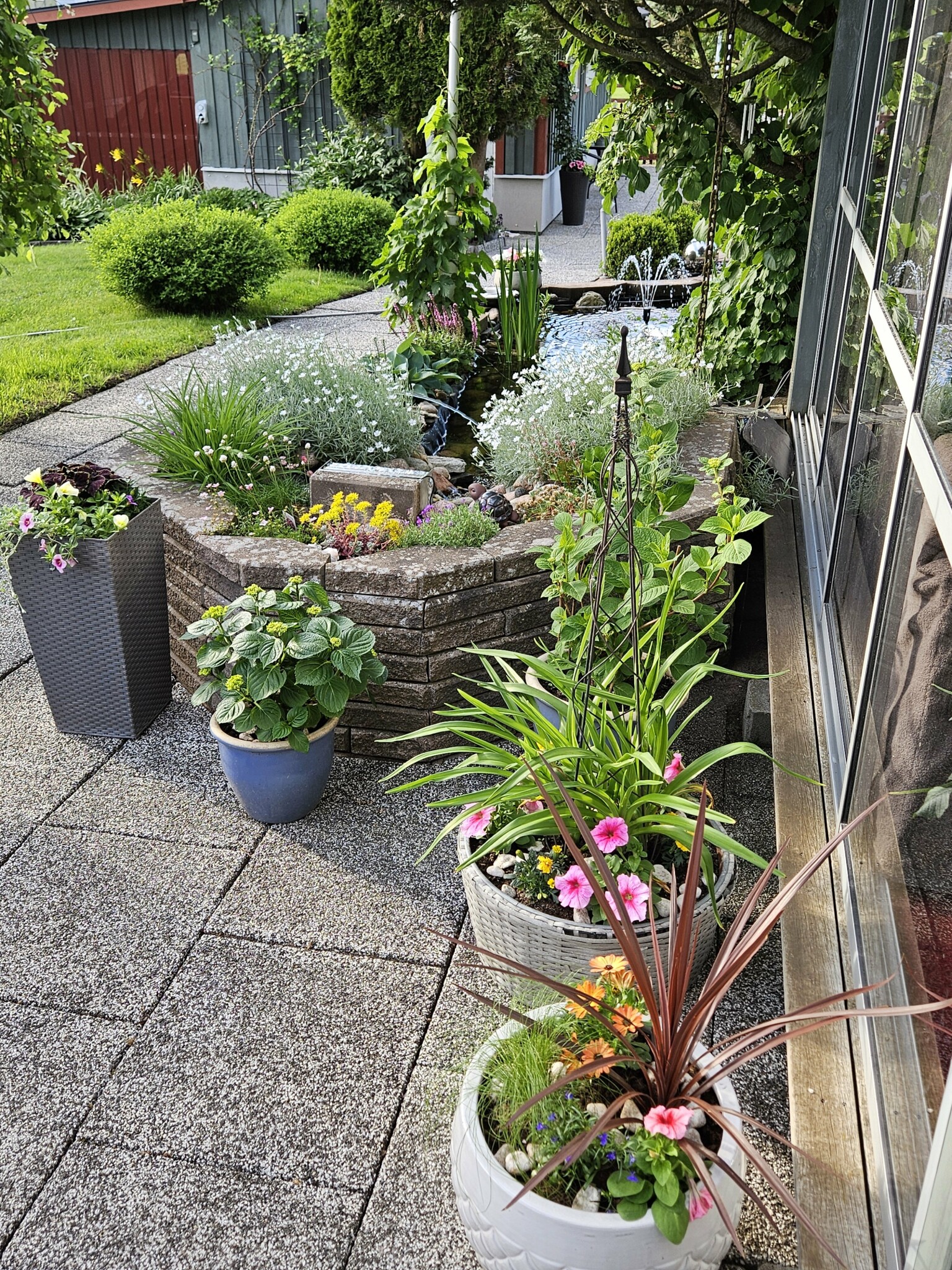 Mest grönt för stunden men krukor och amplar är nu laddade.