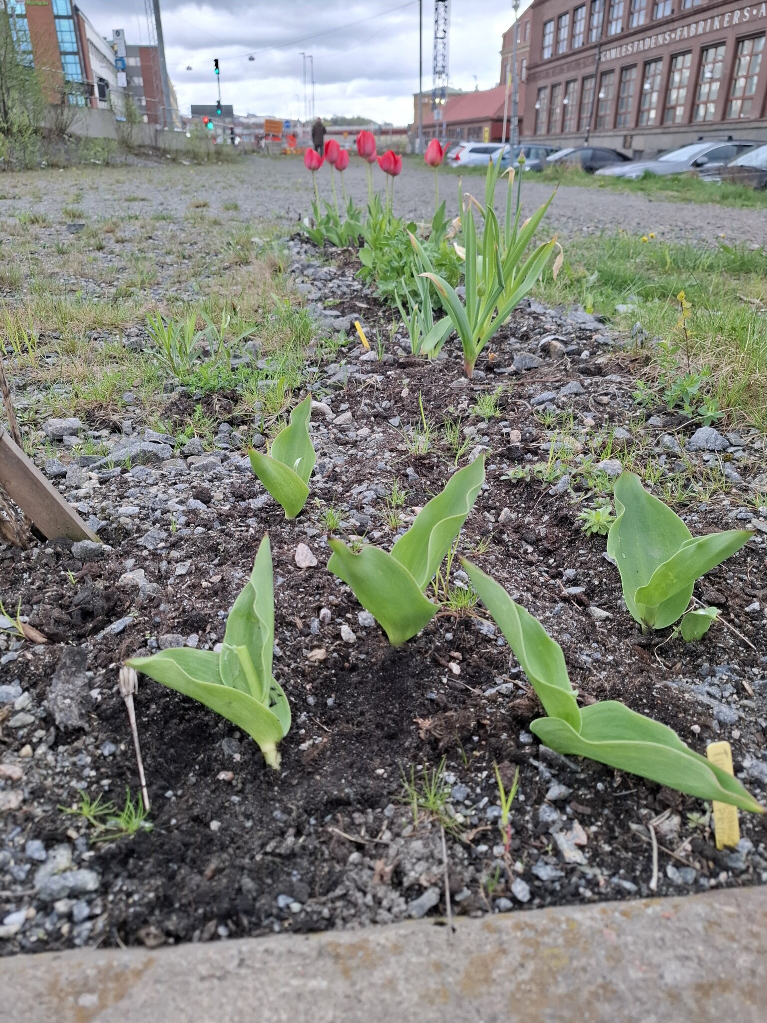 Inte riktigt i trädgården. Snarare i trafikmotets grusplan i Gamlestaden i Göteborg.