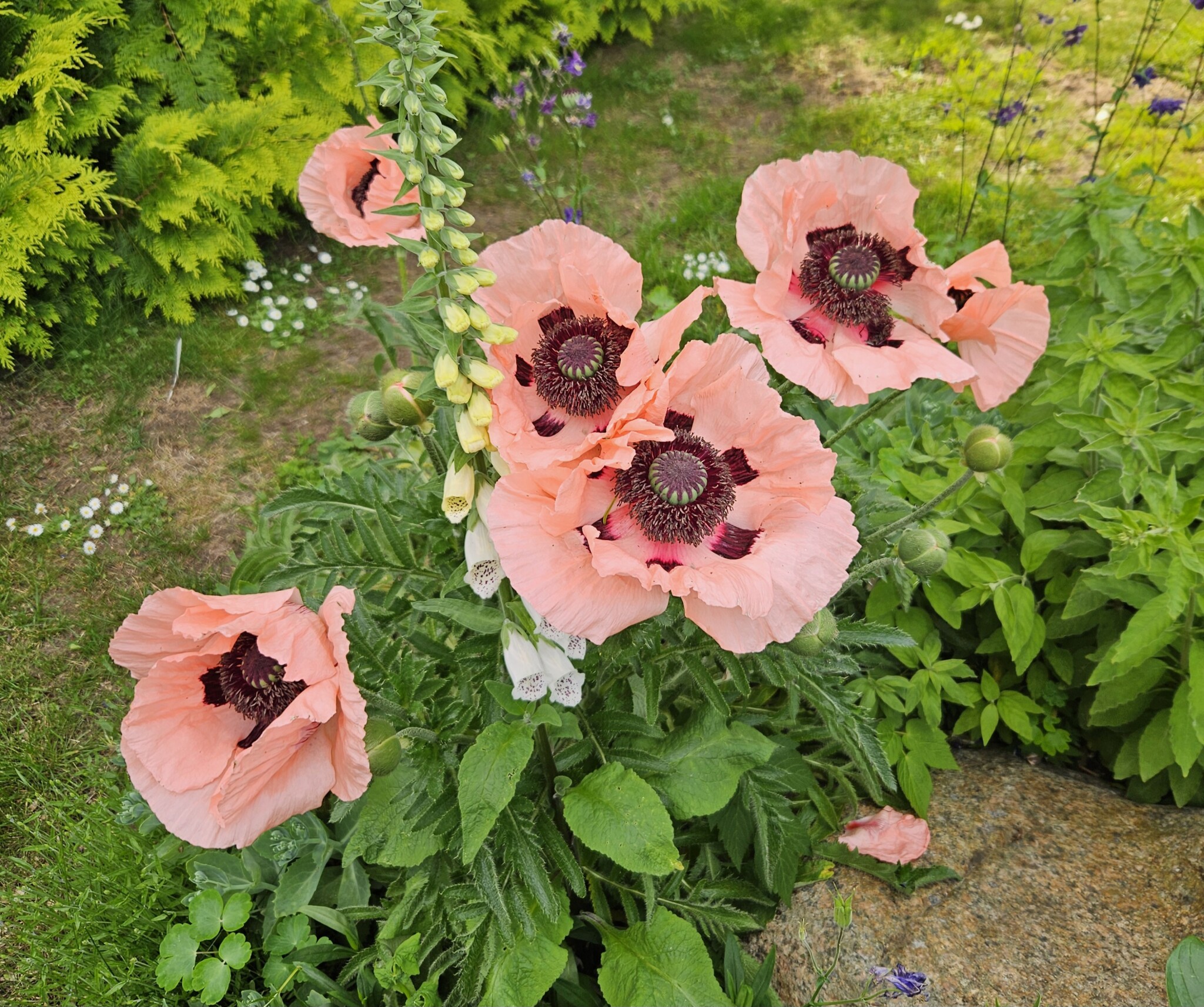 Klippte/sågade ner en rhododendron för 3 år sedan pga den var för stor. Enligt FB skulle nya skott växa på de stubbade grenarna, men så blev det inte. Först andra året kom skott ur marken och detta år blommade den fint igen.