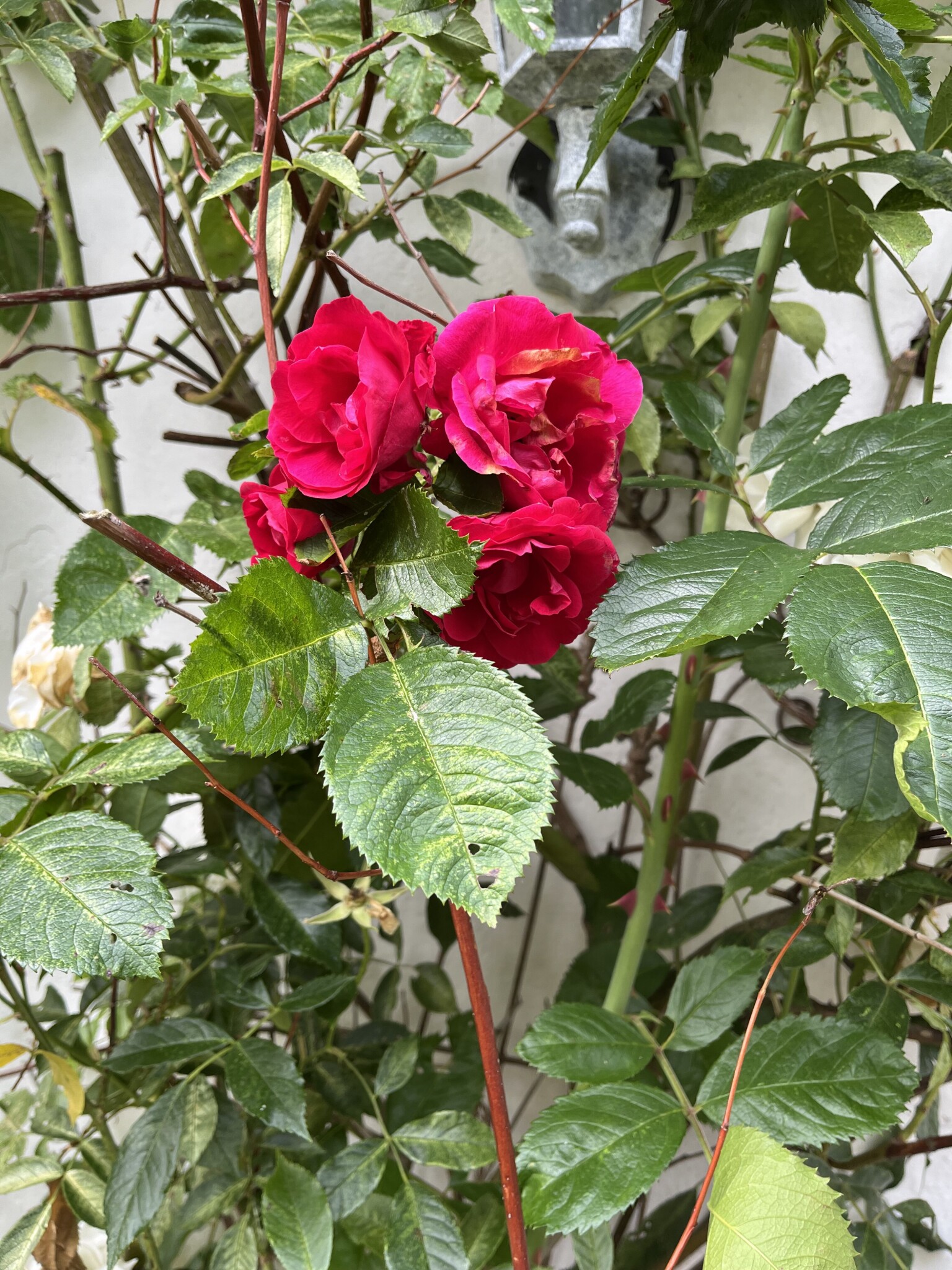 Hur kom den dit. Jag har kycklingnät mot rådjur över den.