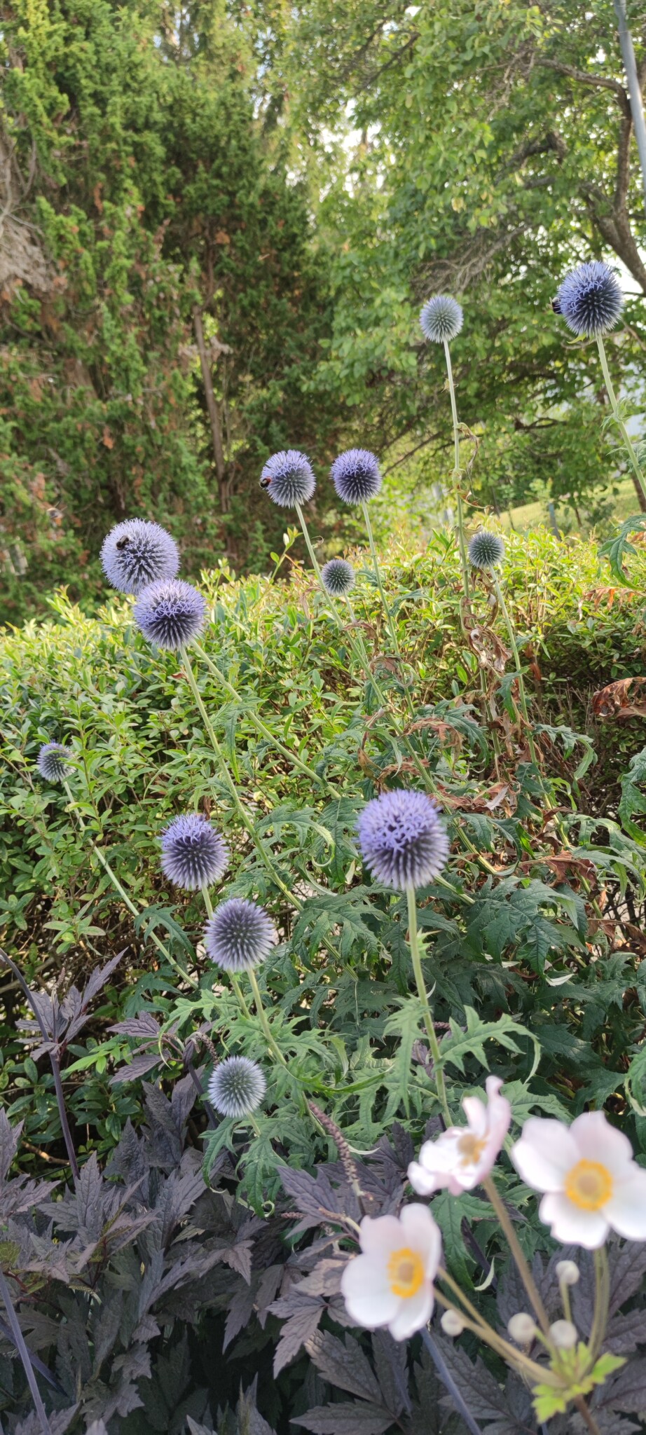 Hade tänkt att plocka in en bukett med några bolltistel och lite mer, men bestämde mig för att låta dem stå eftersom humlorna är helt besatta av dem.