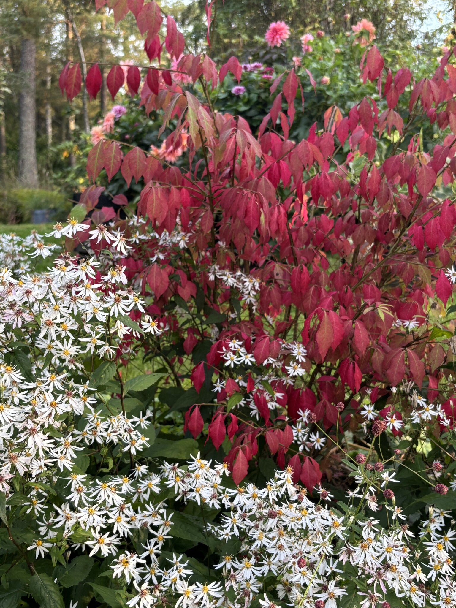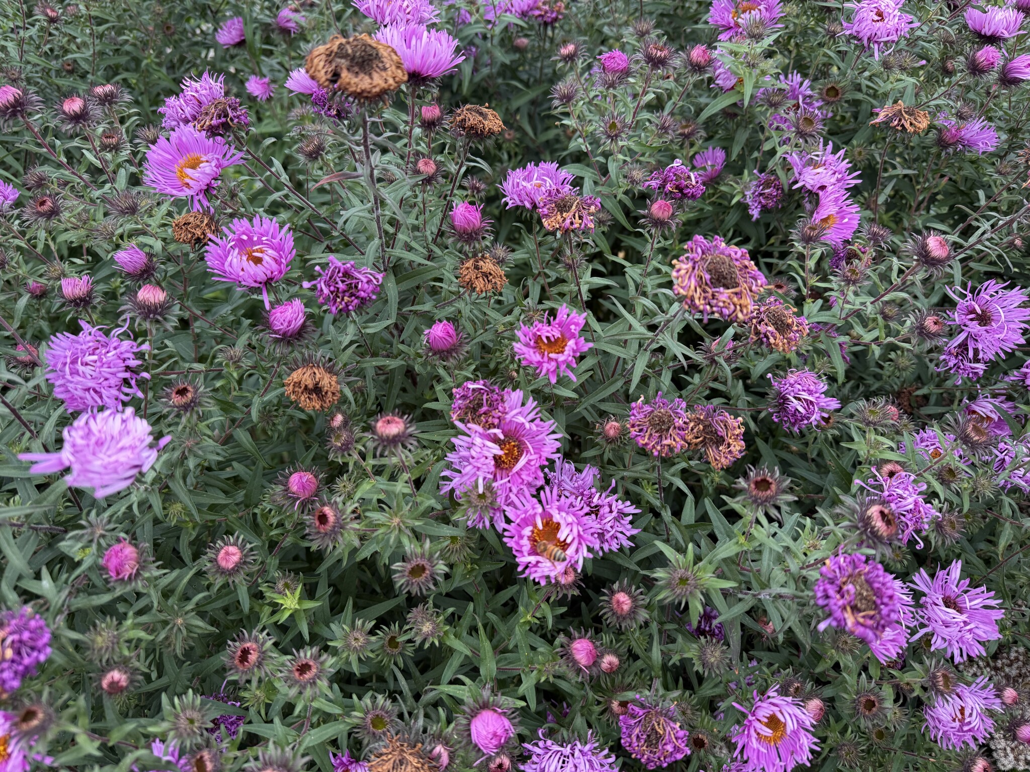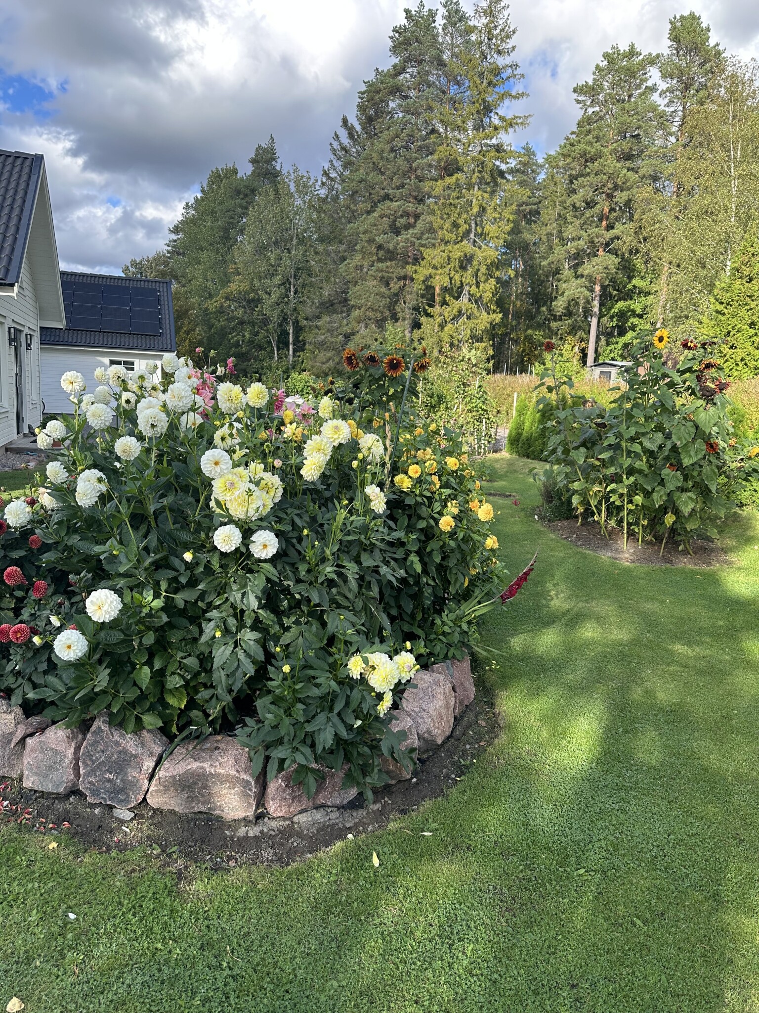 Inte så mycket kvar i trädgården men höstanemonerna blommar och pelargonerna kommer med nya blommor. Snart får man drömma sig bort i trädgårdsböcker och frökataloger i väntan på nästa säsong.