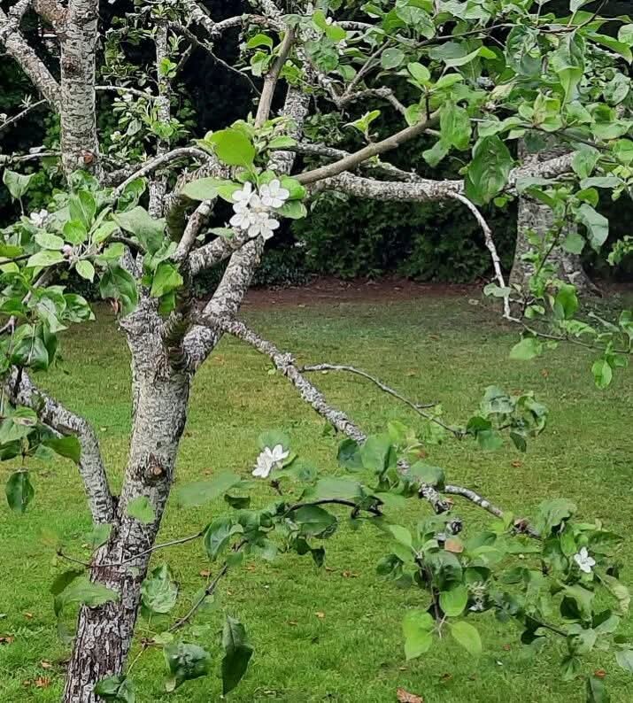 En del jordgubbsplantor har börjat blomma igen. Den kinesiska kärleksörten blommar fint långt in på hösten och lockar till sig många insekter.