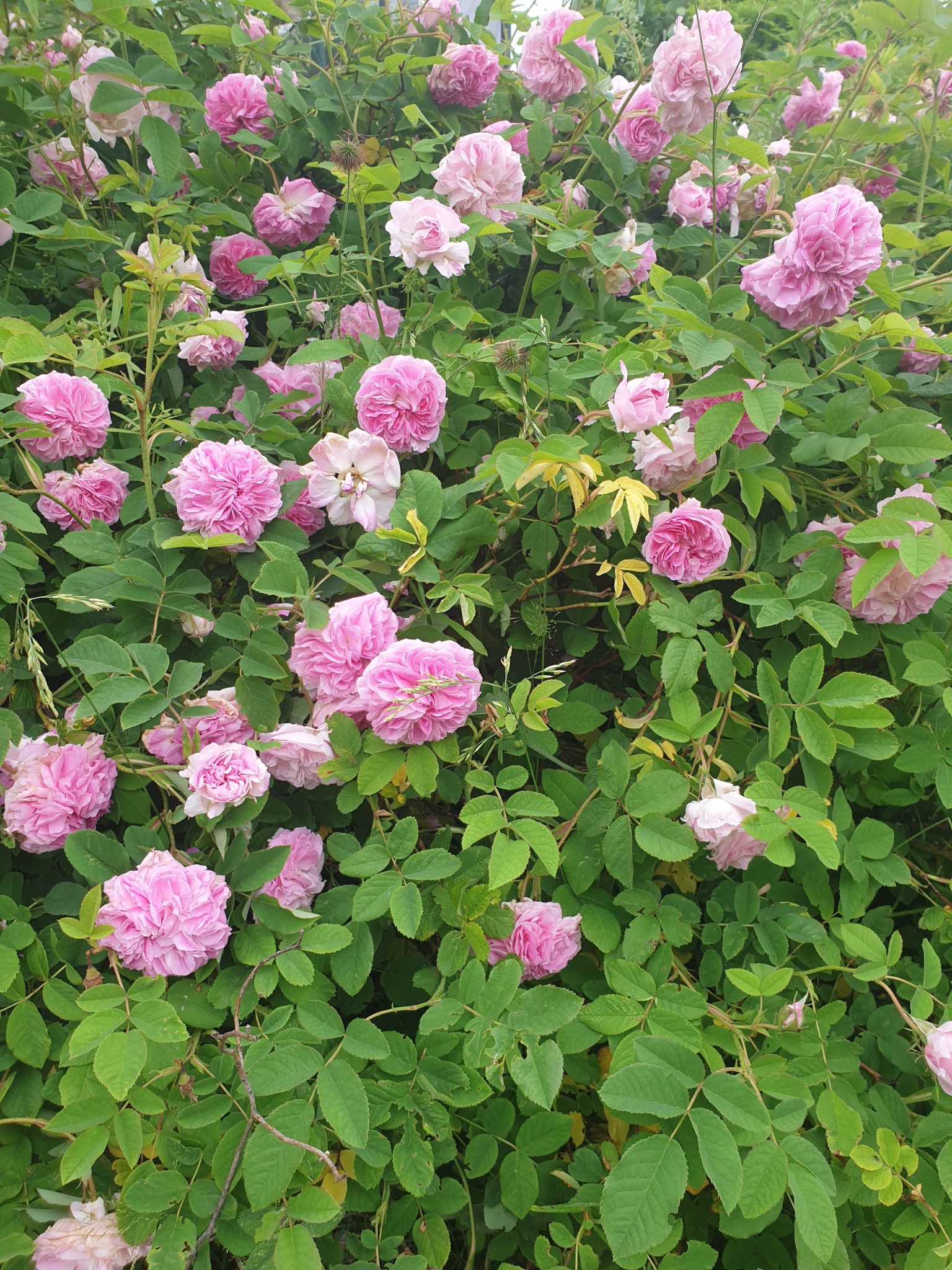Vad tycker ni om denna buskros egentligen? När den blommar är den ju himla söt, men jag upplever att blomningen är väldigt kort (blommorna hinner knappt slå ut innan de börjar se lite halvdassiga ut) och resten av tiden är den risig och tråkig. Vi har tänkt länge att gräva upp hela alltet. Den står dock inte i vägen eller har någon dum placering, så vi har inte bestämt oss.