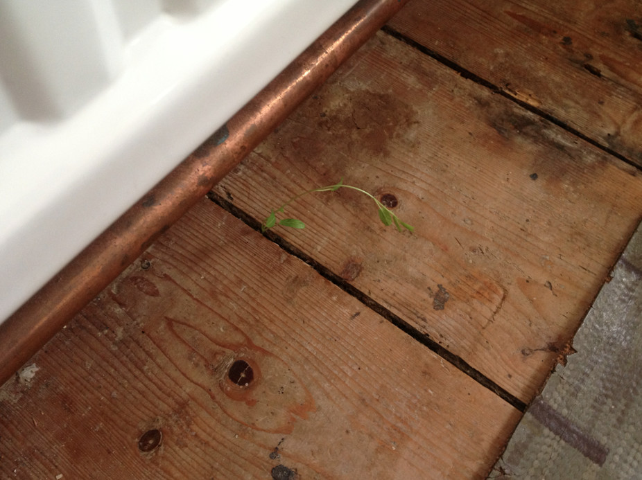 I mitt kontor. Inte färdigrenoverat som synes, men det är ju lite anmärkningsvärt med matjord i golvspringorna..