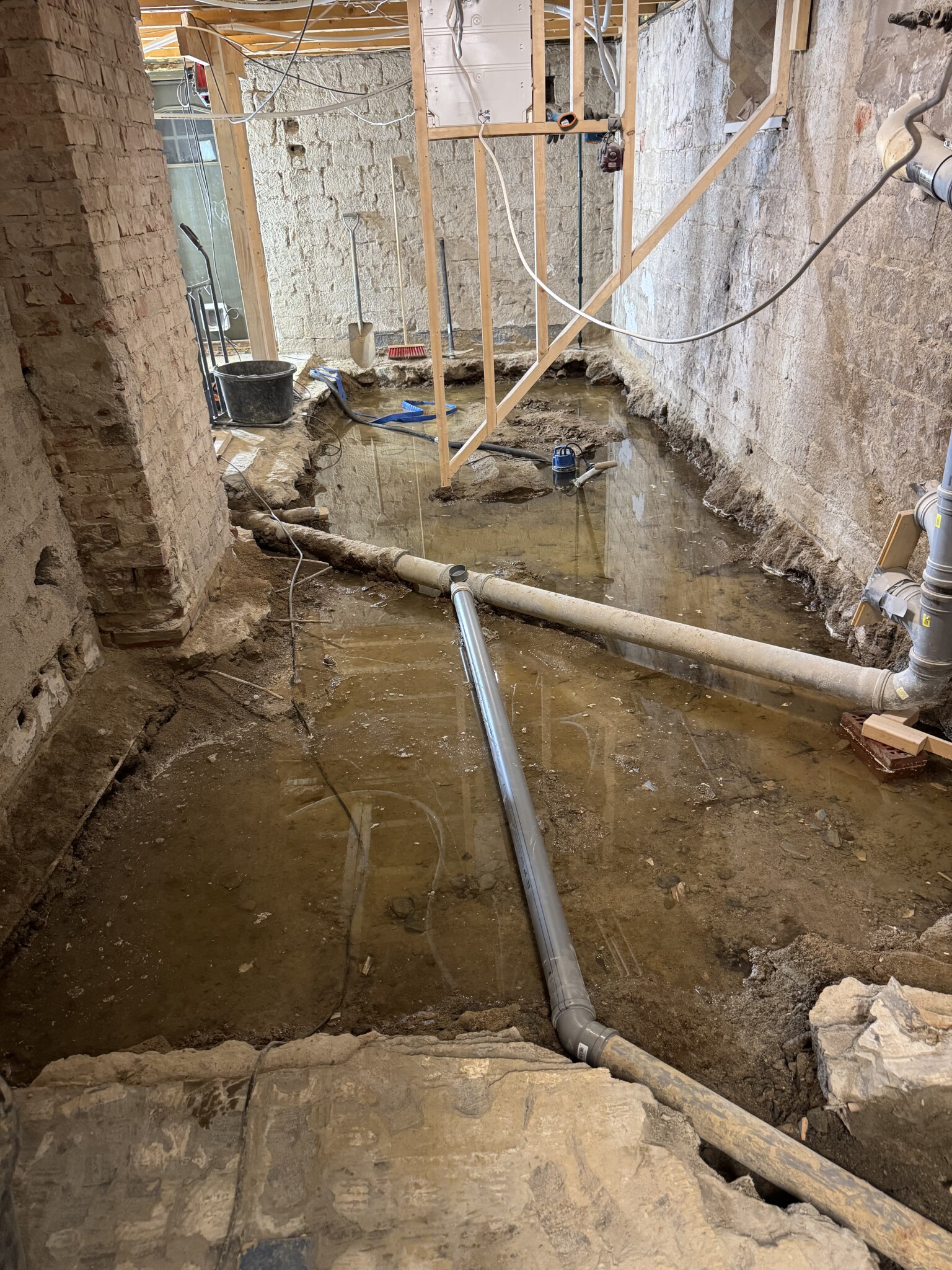 Bilden är tagen innan dränering mm är installerad. Så ja det är blött!