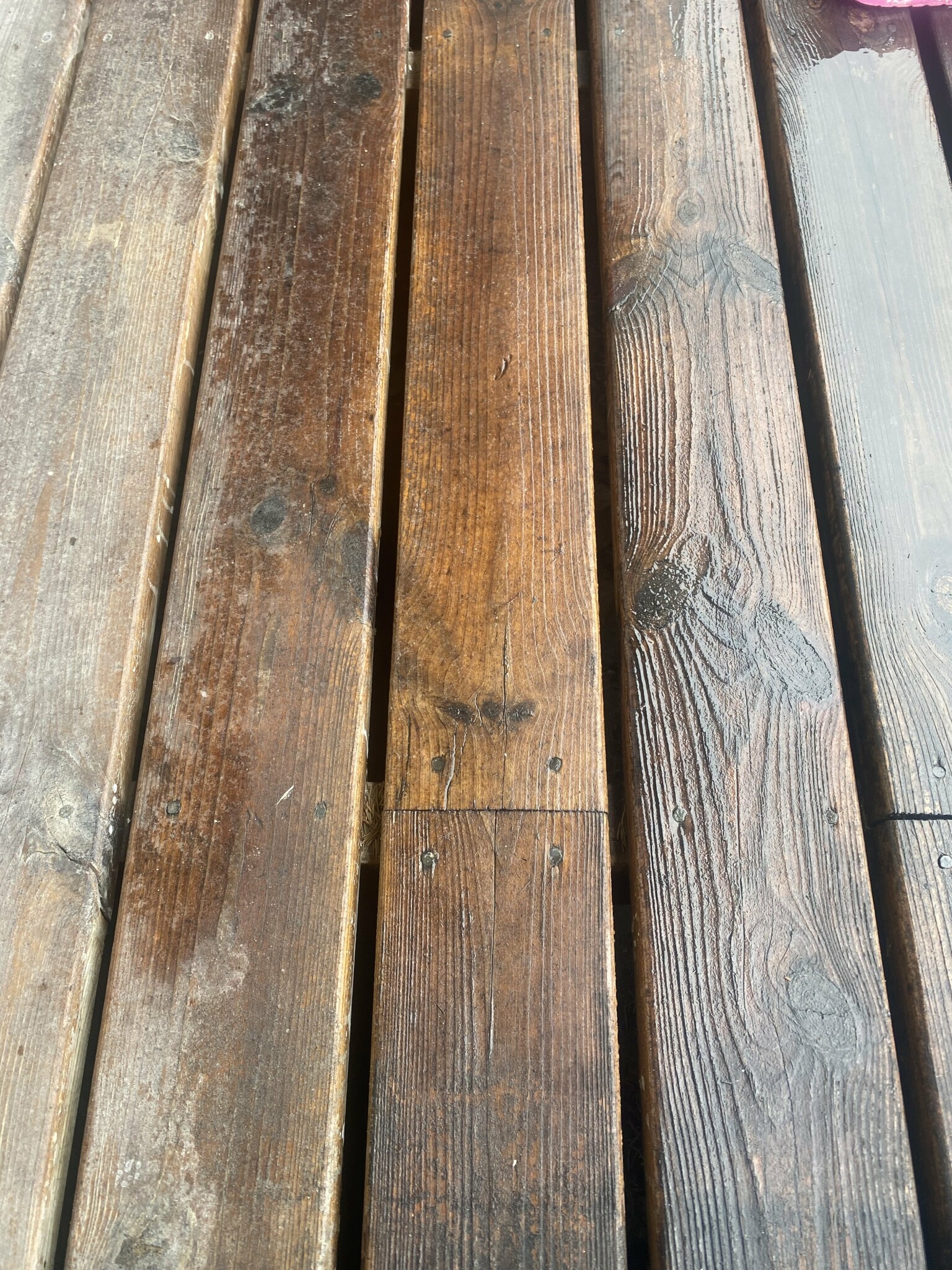 Fråga 1: Något tränat öga som kan ge svar på vad för trä som använts i denna altan från 1995?