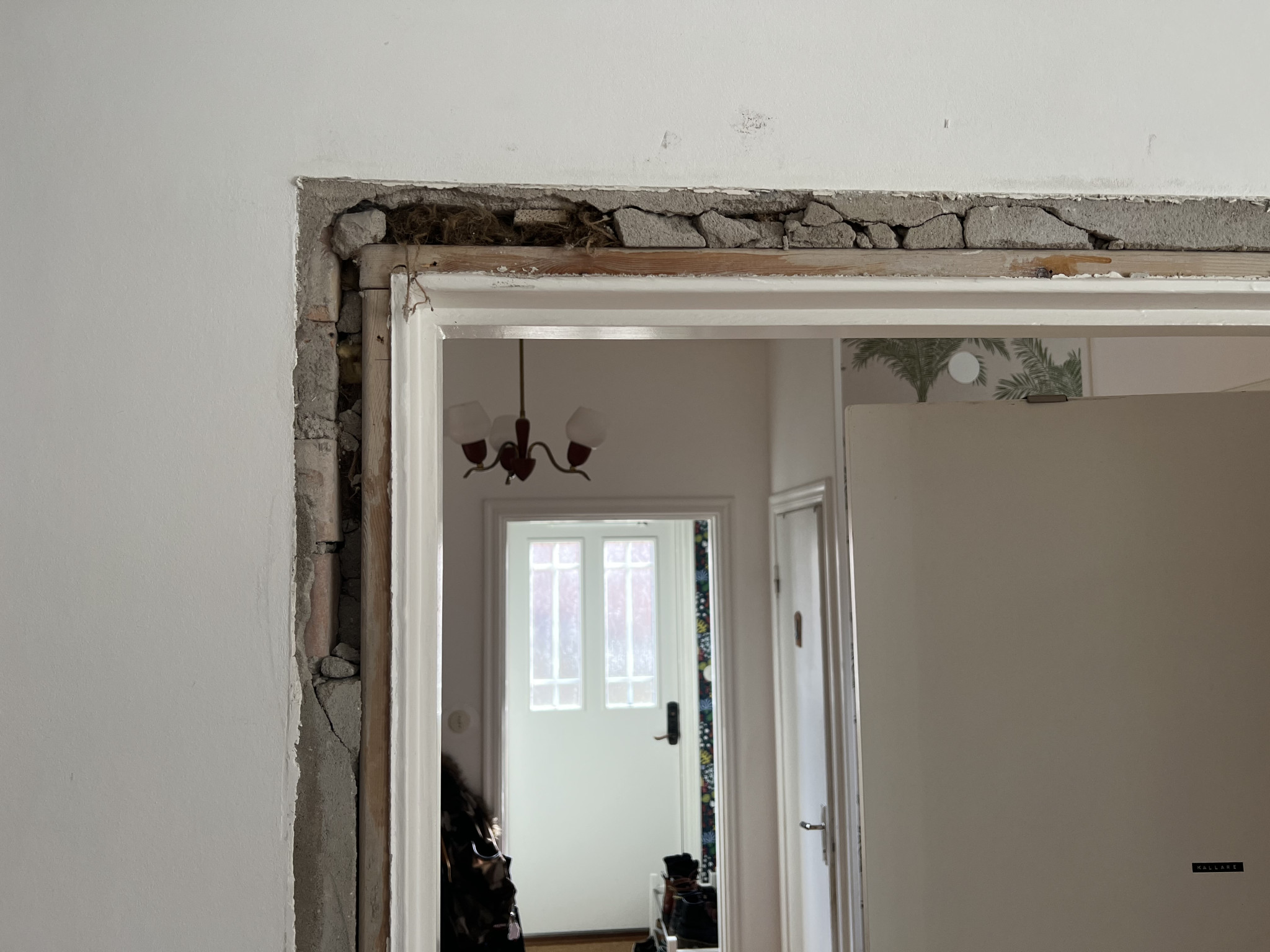 Vi byter dörrfoder i vårt sekelskifteshus och tyvärr faller bruket mellan dörrkarm och tegelvägg ut när vi tar bort det gamla dörrfodret.