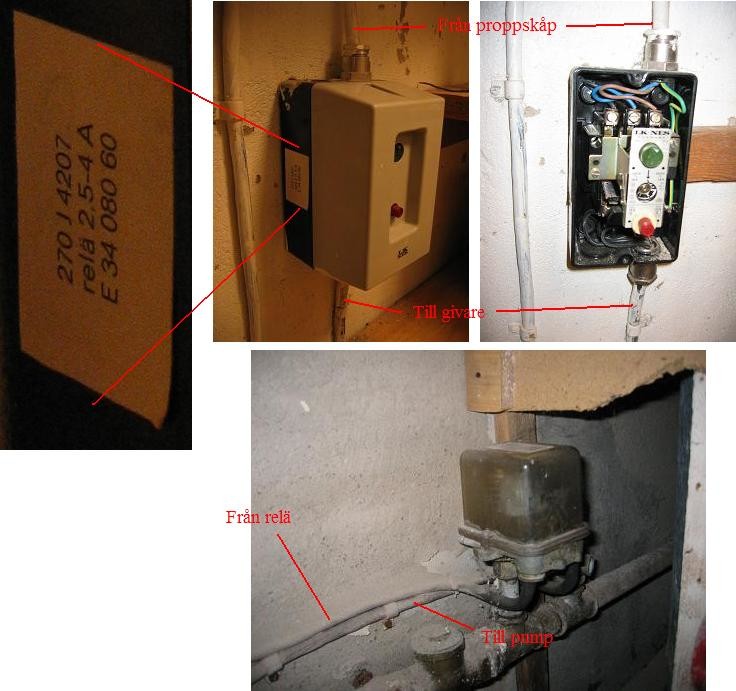 Och för att inte det skall bli missförstånd så det som anges som relä är en tryckströmbrytare och denna skicka inga signaler bakåt till motorskyddet, denna känner av vattentrycket i vattensystemet och bryter eller slår på strömmen till pumpen.