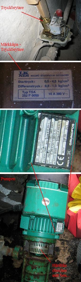 Slutplanen är väl idag i alla fall att byta motorskyddet, skaffa en sånt där Clas Ohlson skydd och montera det till sommaren på utsidan. Allt annat låter jag vara kvar och hydroforen blir inte isolerad. Pumpen hoppas jag går att dra åt eller byta nån packning.