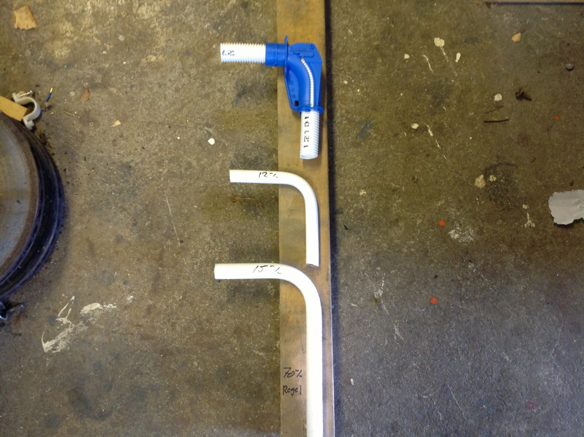 Hade ingen väggdosa i bilen, lagt bockade bitar gjorda av prisol 12 och 15mm med korrekt bocknyckel. Regeln är 70mm som bitarna ligger på, även lagt dit en såkallad blå "pickadoll" eller väggbockfixtur som den kallas från uponor.