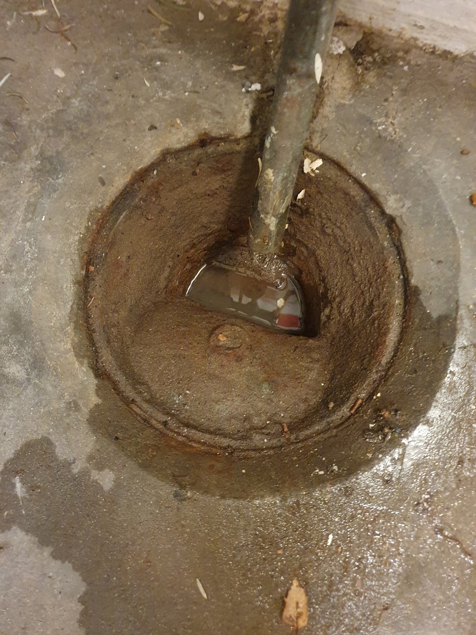 Noterade dålig avrinning i avloppet i garaget, hus byggt 1963. Rensade vattenlåset på massor av sand och skruv(!). Kunde inte lyfta av vattenlåset så pillade så gott jag kunde runt kröken med fingrarna. Fortfarande dålig avrinning så stoppet sitter längre ut tyvärr.