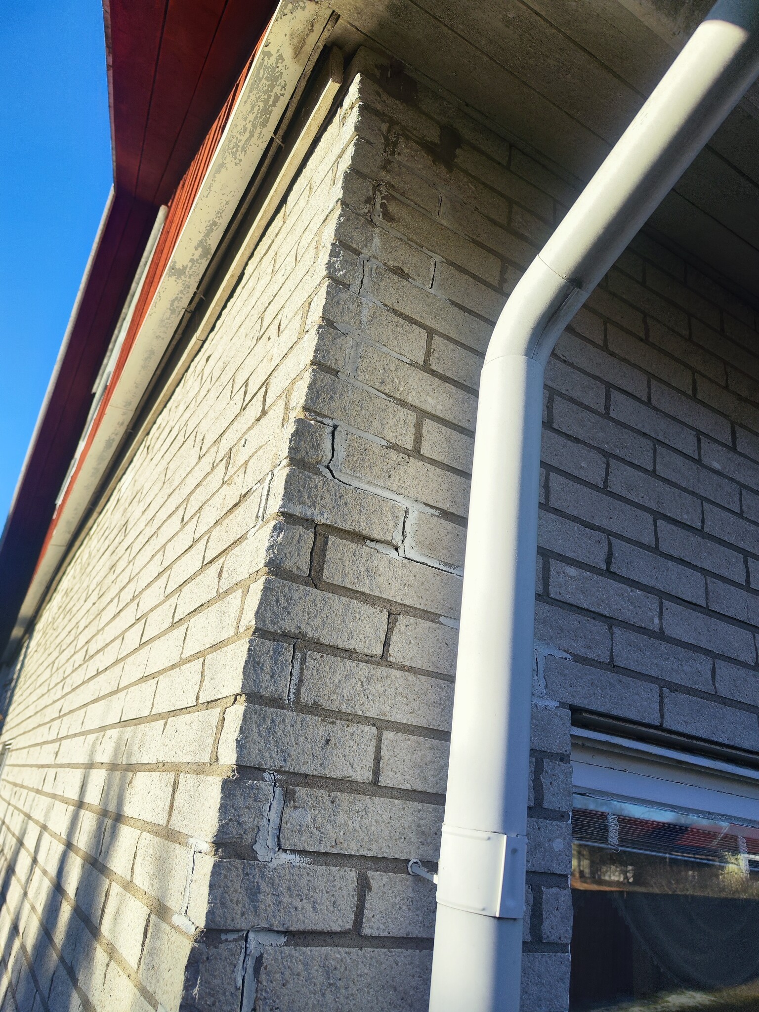 Har ett hus (byggt 1958, 1,5 plan med källare) med mexitegel fasad och på ena gaveln är det en ordentlig spricka som jag tänker att jag borde laga på något vis. Både för att skydda mot fukt, kyla men även för utseende.
