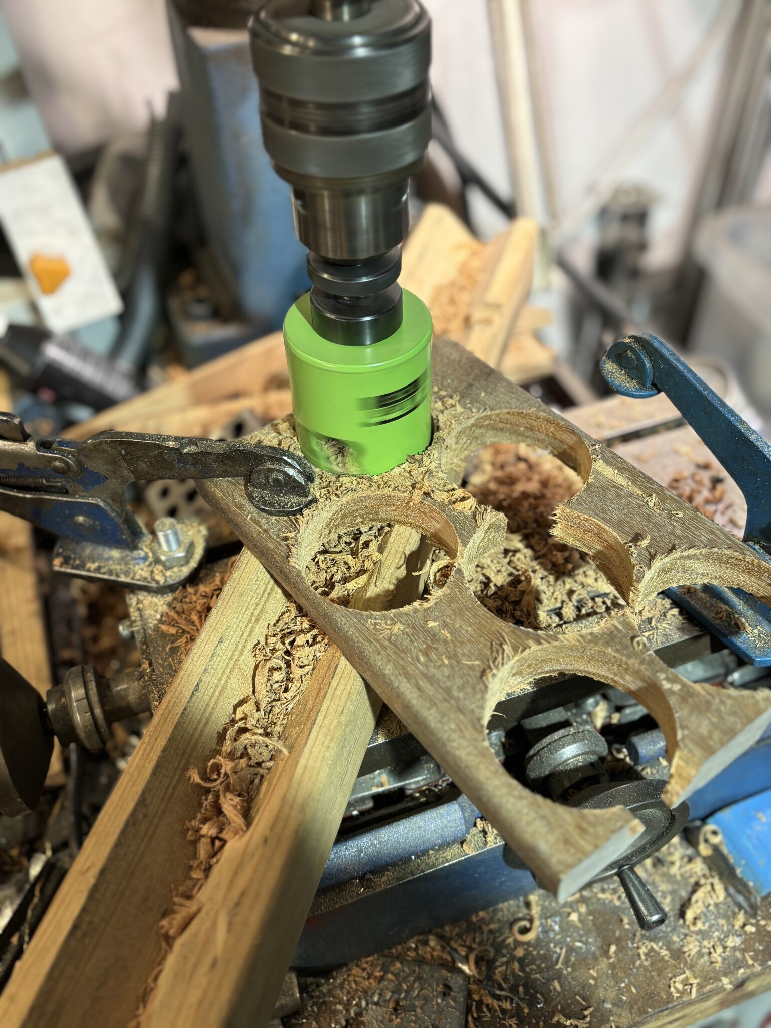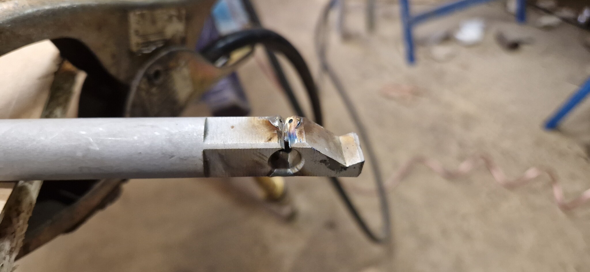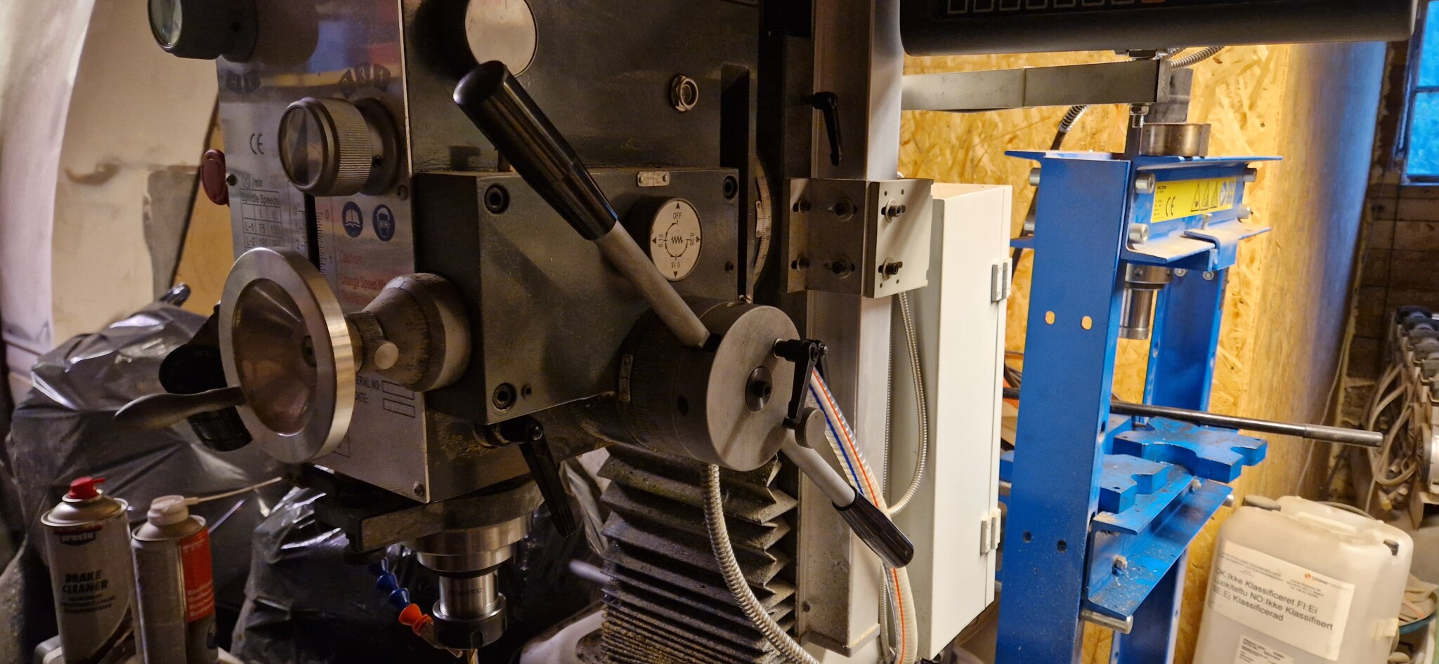 Lyckades köra av ena handtaget på fräsen när jag fräste bort 5kg 4140 stål på en press till jobbet för någon månad sedan , sänkte pinolen 2mm per gång och körde matning med ändlägesstopp så jag kunde göra annat medans. Tillslut tog handtaget i pressen och matningen var tydligen stark nog för att bryta av det...