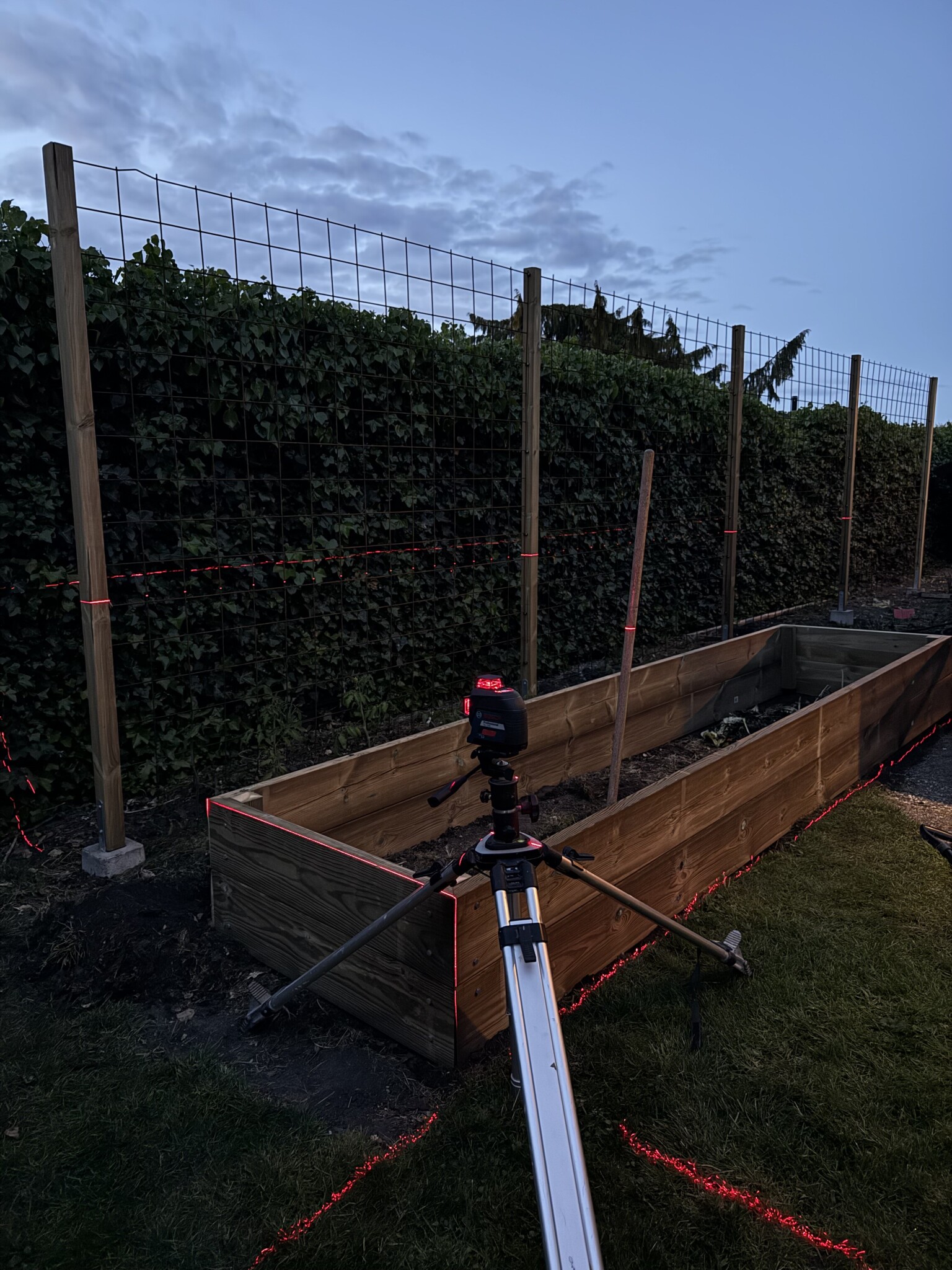 Har byggt en odlingslåda idag! Nu när mörkret föll passade jag även på att gräva så den hamnade på rätt höjd samt sidled. Det ska förhoppningsvis komma regn nu här i Skåne så jag ville bli klar innan det blir lervälling.