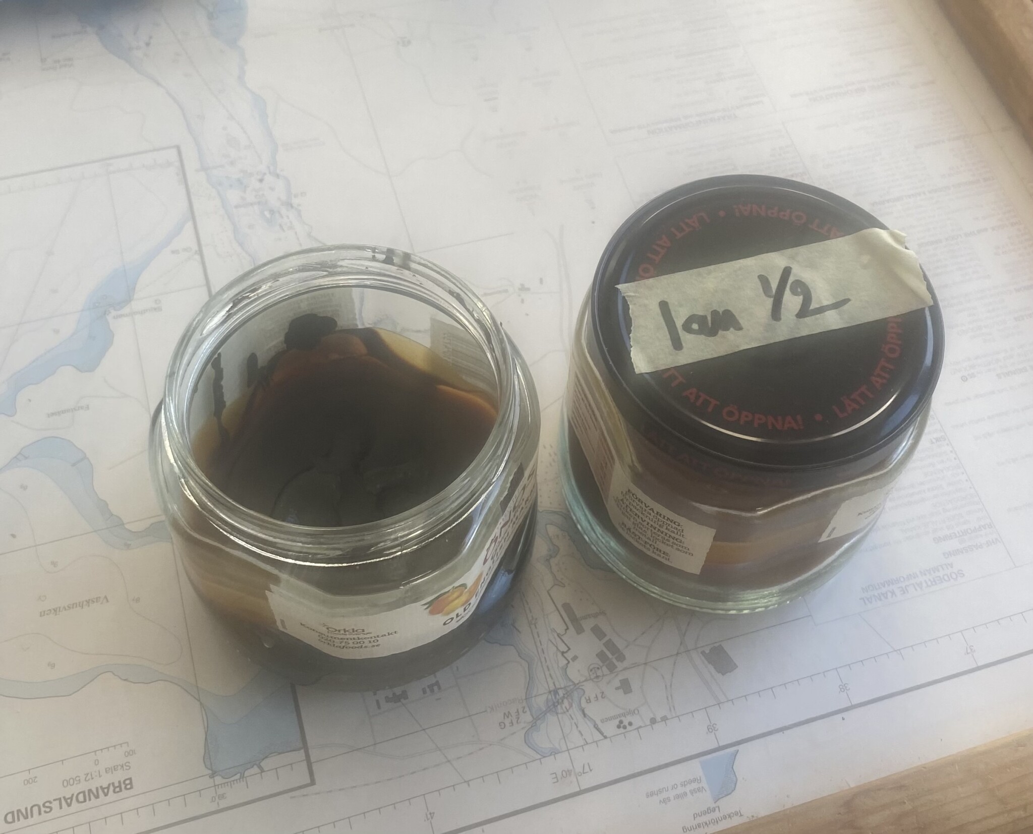 Ett halvkilo bivax och ett kvartskilo tjära senare har jag spackel i en skala från mjukt till hårt. Har gett bort en del. Nu återstår att testa på utsatta trädetaljer och se om det fungerar.