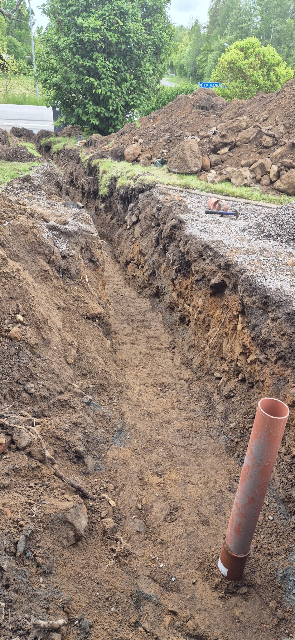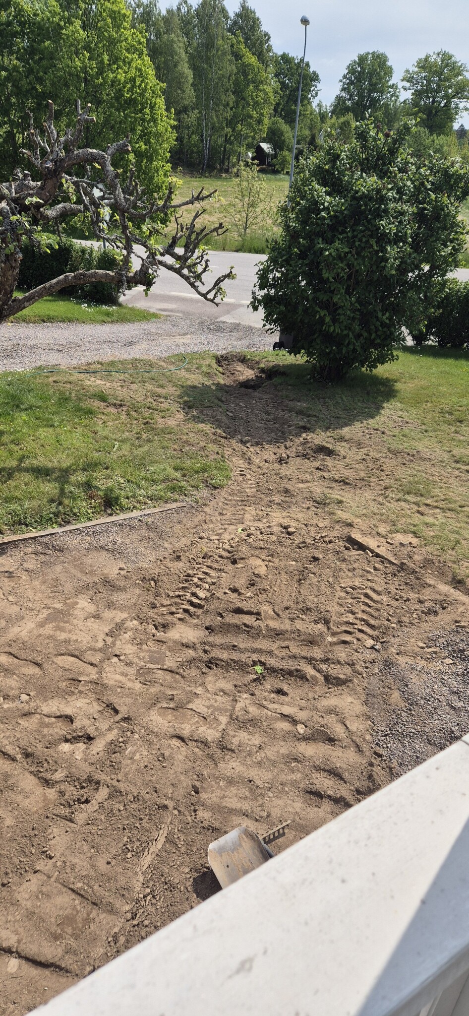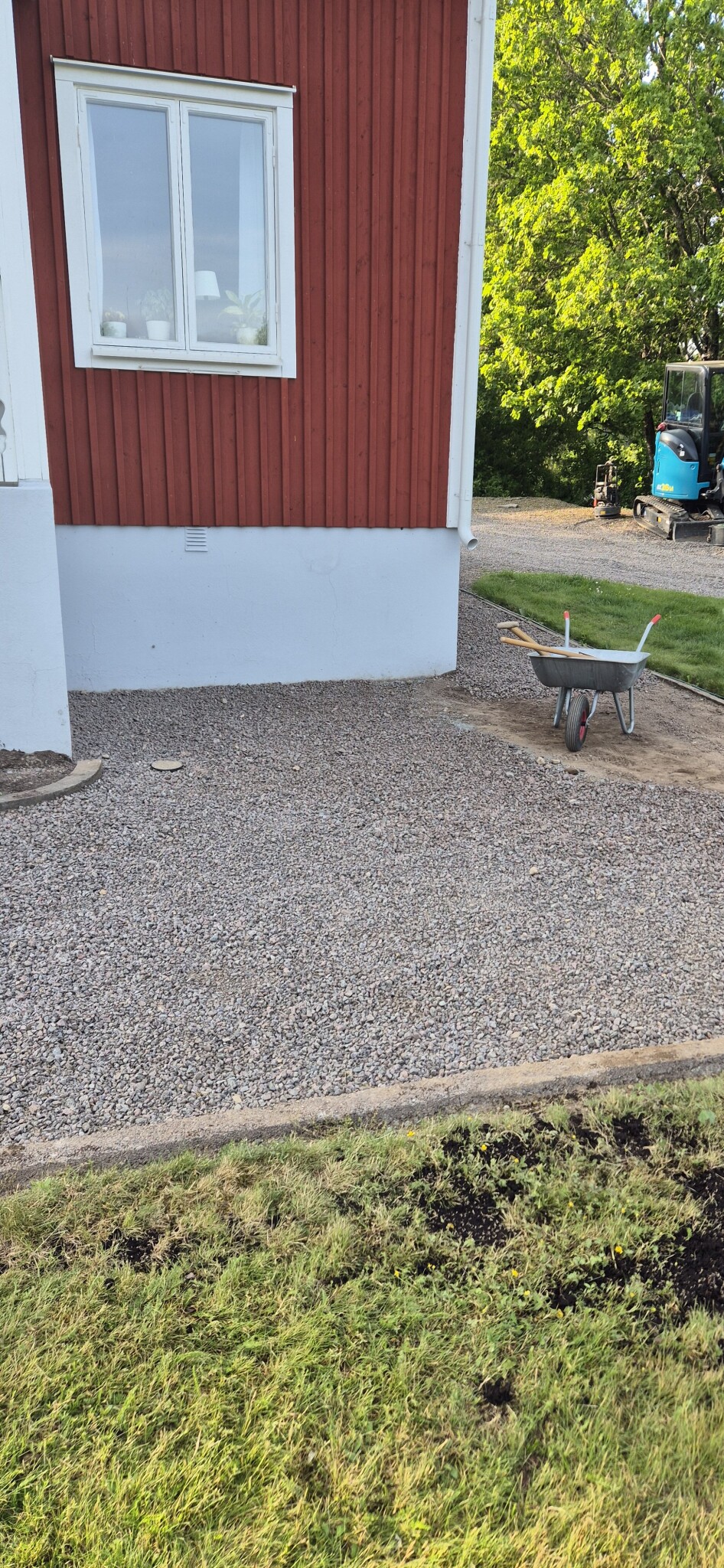 Verktyg: grävmaskin, tigersåg, bilmaskin, spade, padda, skyffel, betongvisp, dammfälla, kratta, skottkärra vattenpass m.m.