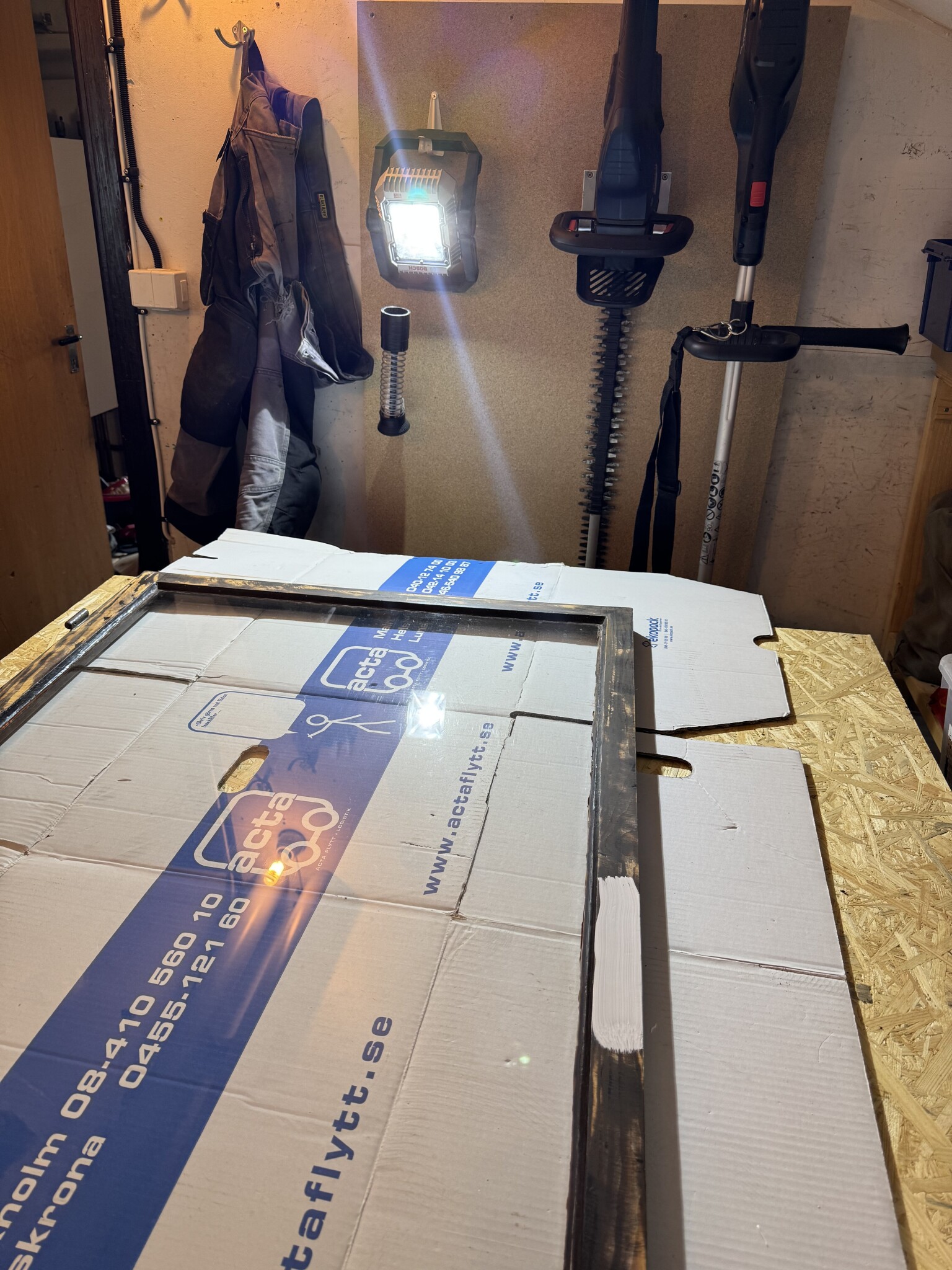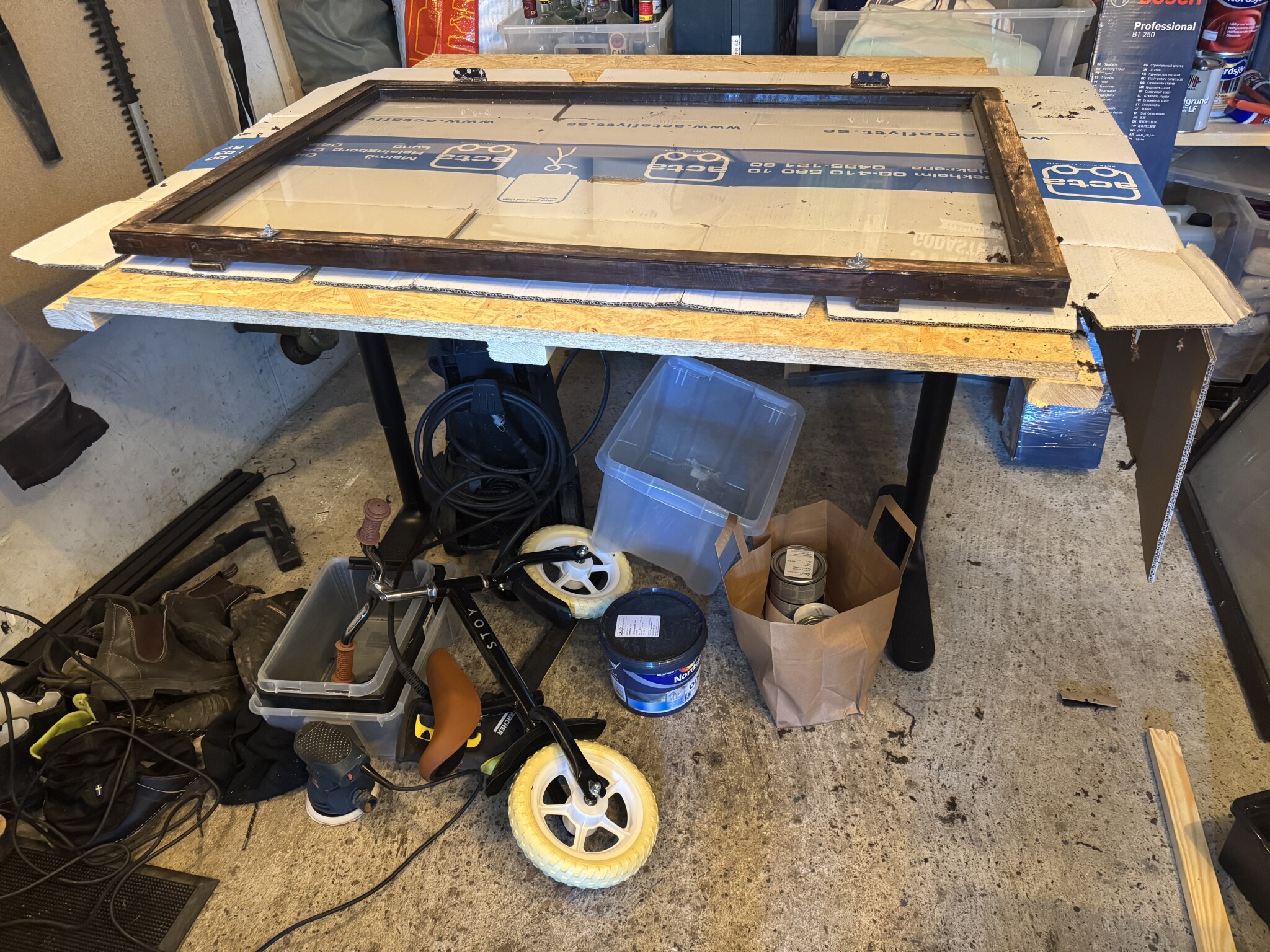 Försökt fräscha upp två av alla fönster som ska flyttas i samband med tilläggsisoleringen, och funderat på när det är dags att ge upp 😬
