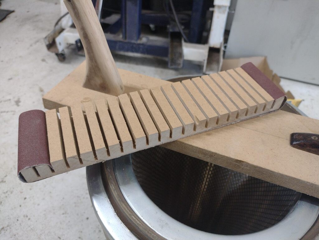 Såhär blev nu slipblocket, det främre greppet var en överbliven träbit som jag inte ides göra nånting med än att runda formerna för bekvämare grepp. Pappret är fastlimmat för att det ska bli en så flat yta som möjligt. Får se hur lätt det går att byta sen, det ska finnas ett specifikt lim för detta syfte men jag bara tog en burk spraylim jag hade på hyllan.