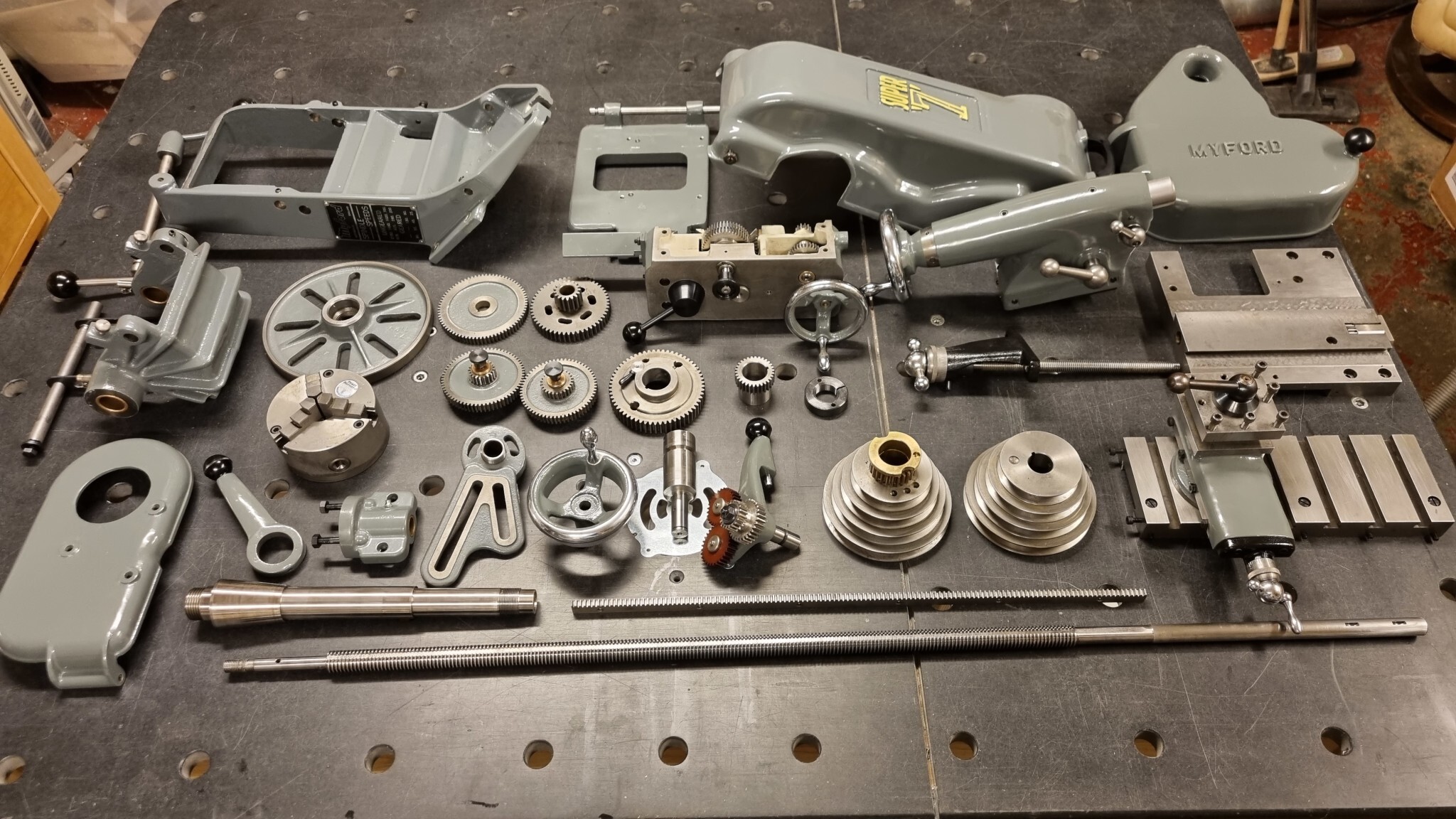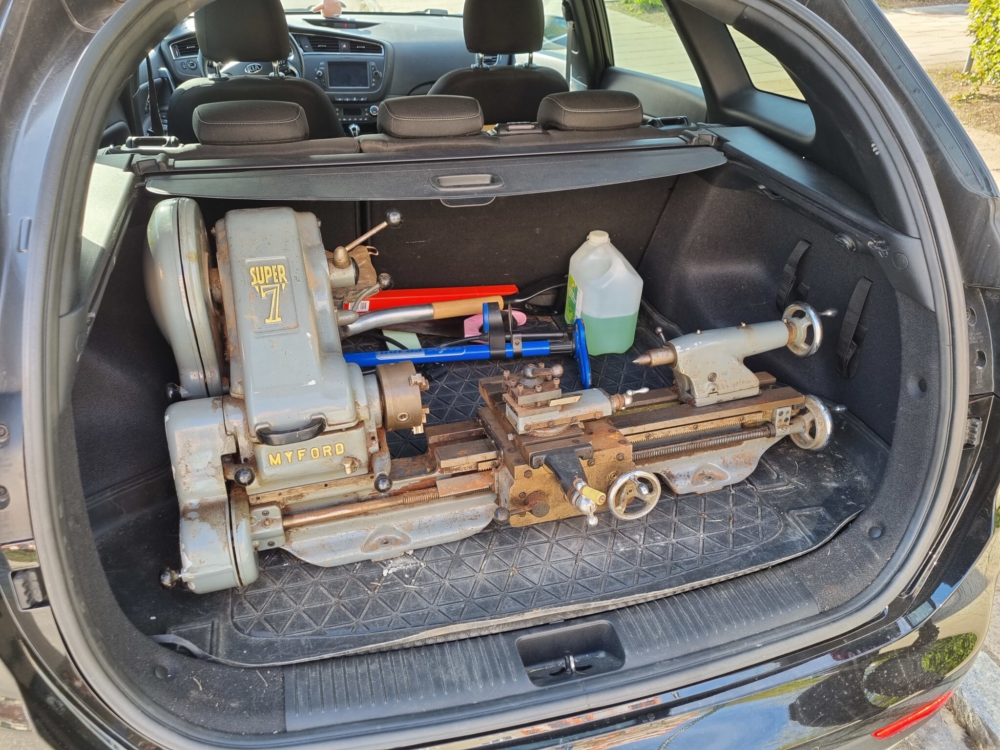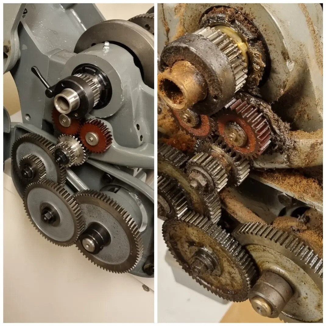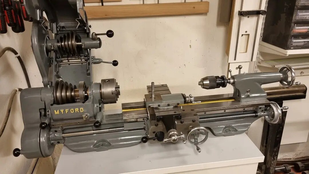 Efter blockettips från @Frustrator för fyra år sedan köptes den här svarven för en spottstyver. Den va redigt grisig o mögig men i princip helt osliten under ett intorkat lager av fett, sågspån och damm. Den demonterades ner i molekyler, putsades o fixades o gjordes jättefin. Sprillans ny motor inhandlades och den var i princip färdig att användas.