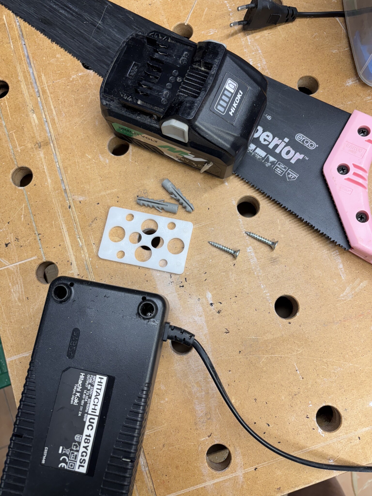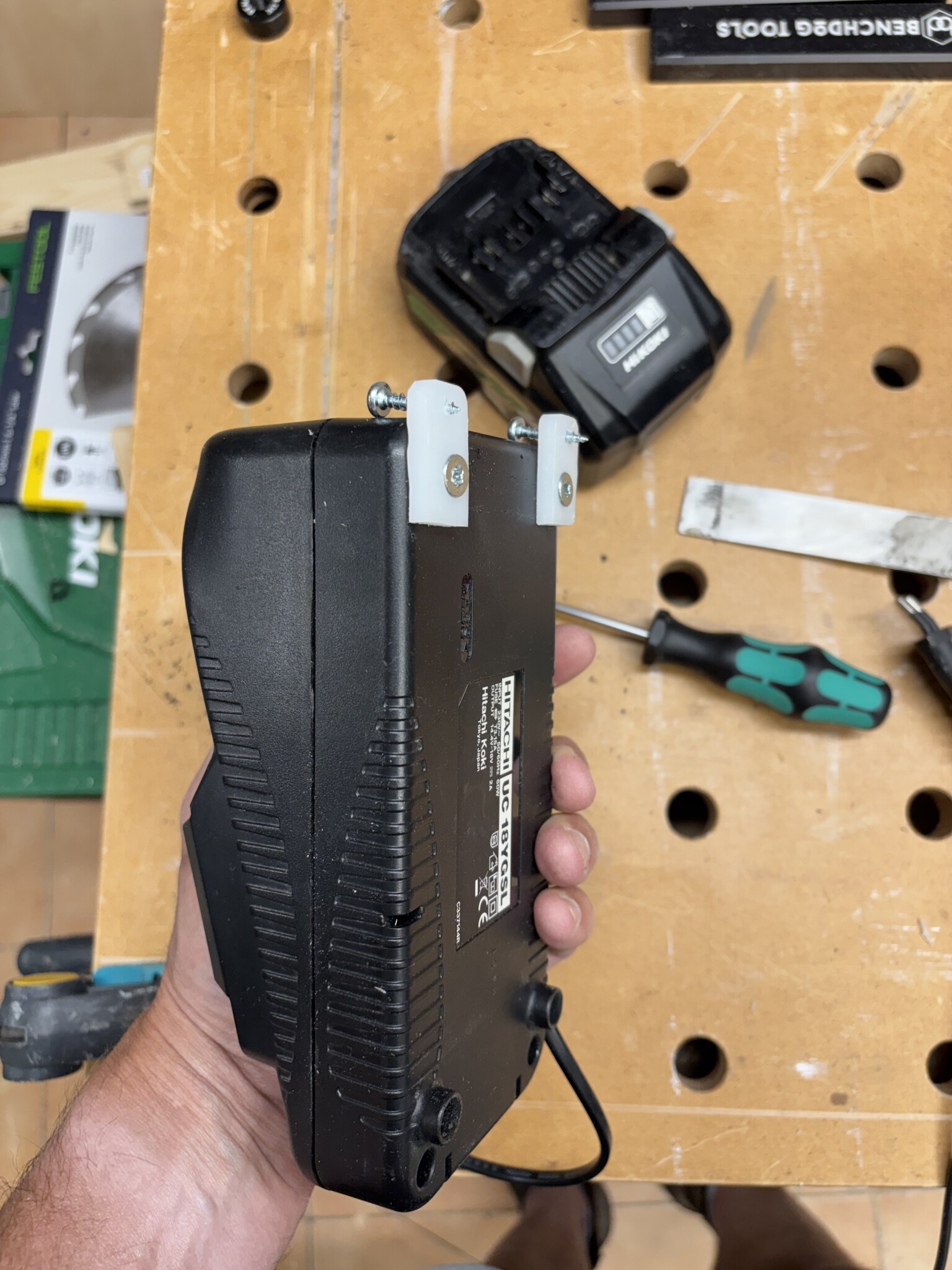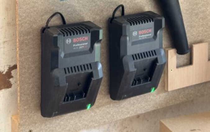Riktigt snyggt hur du fäst laddarna på väggen så där. Har tittat själv med inte hittat någon bra lösning för att fästa bosch-laddare. Vill du berätta hur du gjort? Antar att du borrat/fräst ett hål för eurokontakten bakom också? Du får gärna visa!