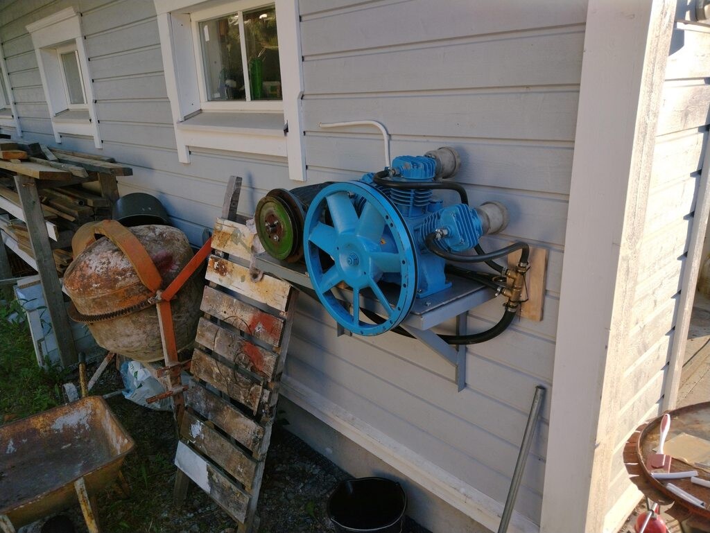 Funkade inte så bra först. Remskivan jag försökte använda var skräp och passade inte bältet, slirade och vibrerade. Nånting gammalt tillverkat i plåt från en 60 tals kompressor jag skrotade för många år sen. Jag köpte en riktig remskiva för 400kr.