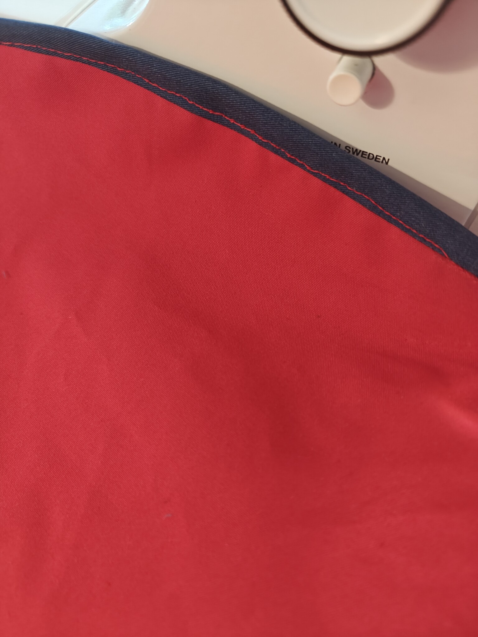Tro fasen att jag glömde vränga tyget efter att ha provpassat. Så nu har jag fått ägna en 40min till att sy på en liten rullad kant för att dölja att avigsidan är utåt på påsen..