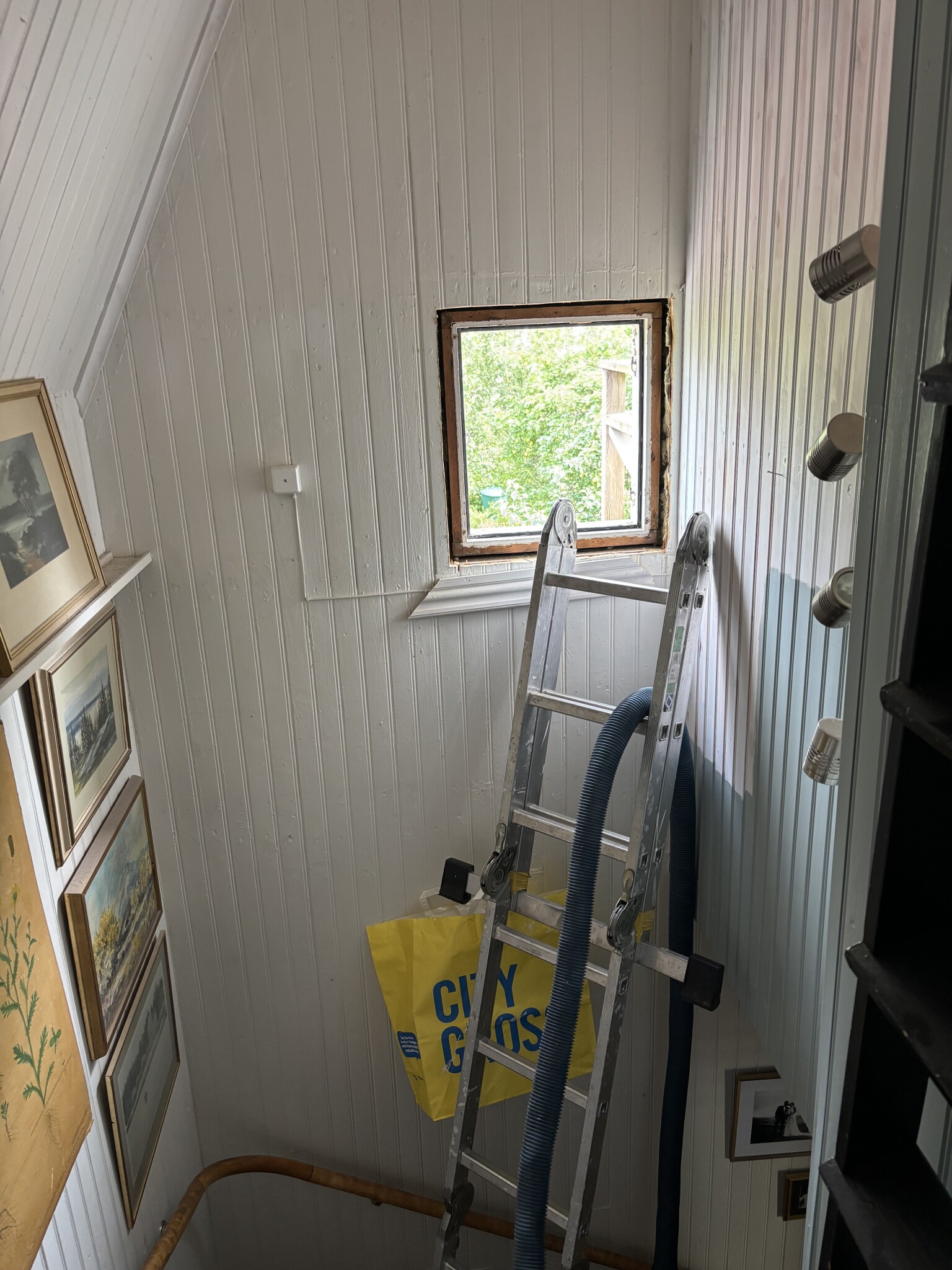Bytt ut ett fönster. Passade på att sätta upp en lampa när stegen ändå var framme.