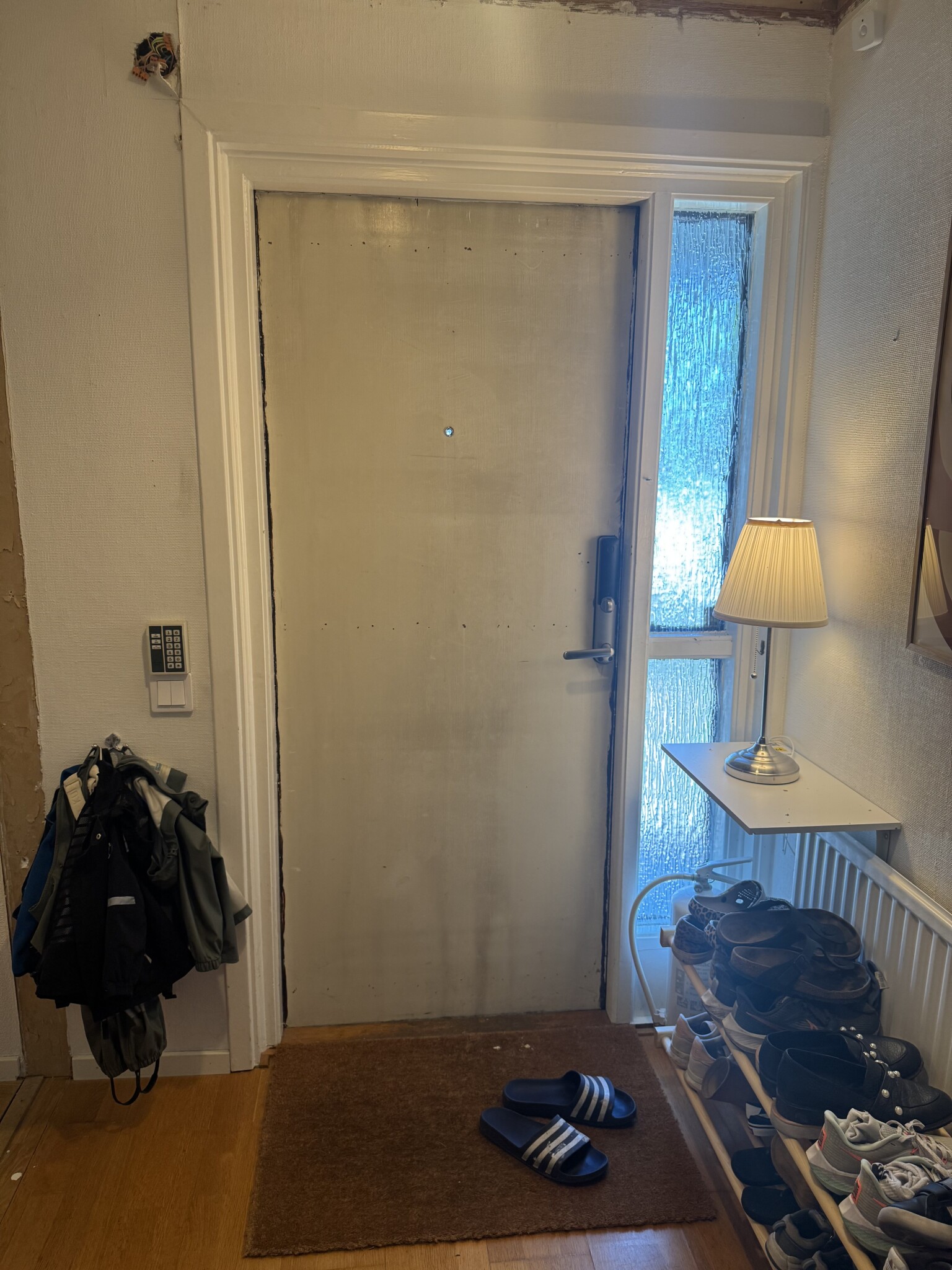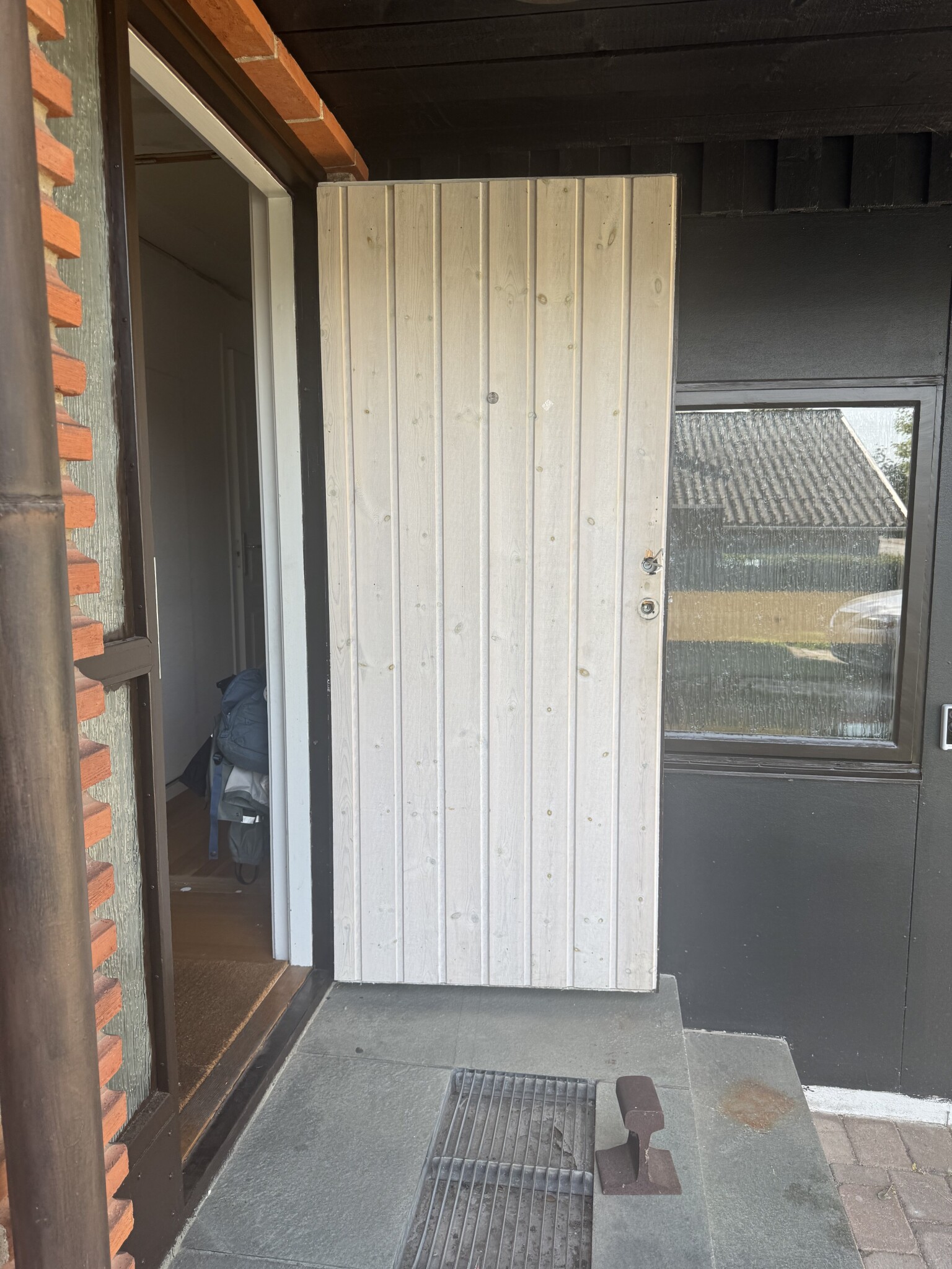 Gubben som bodde i vårt hus innan måste ha fått ett otroligt bra pris på panel för det har tamigfan suttit överallt. Panelsaneringen går vidare och nu var det ytterdörrens tur. Detta skedde igår.