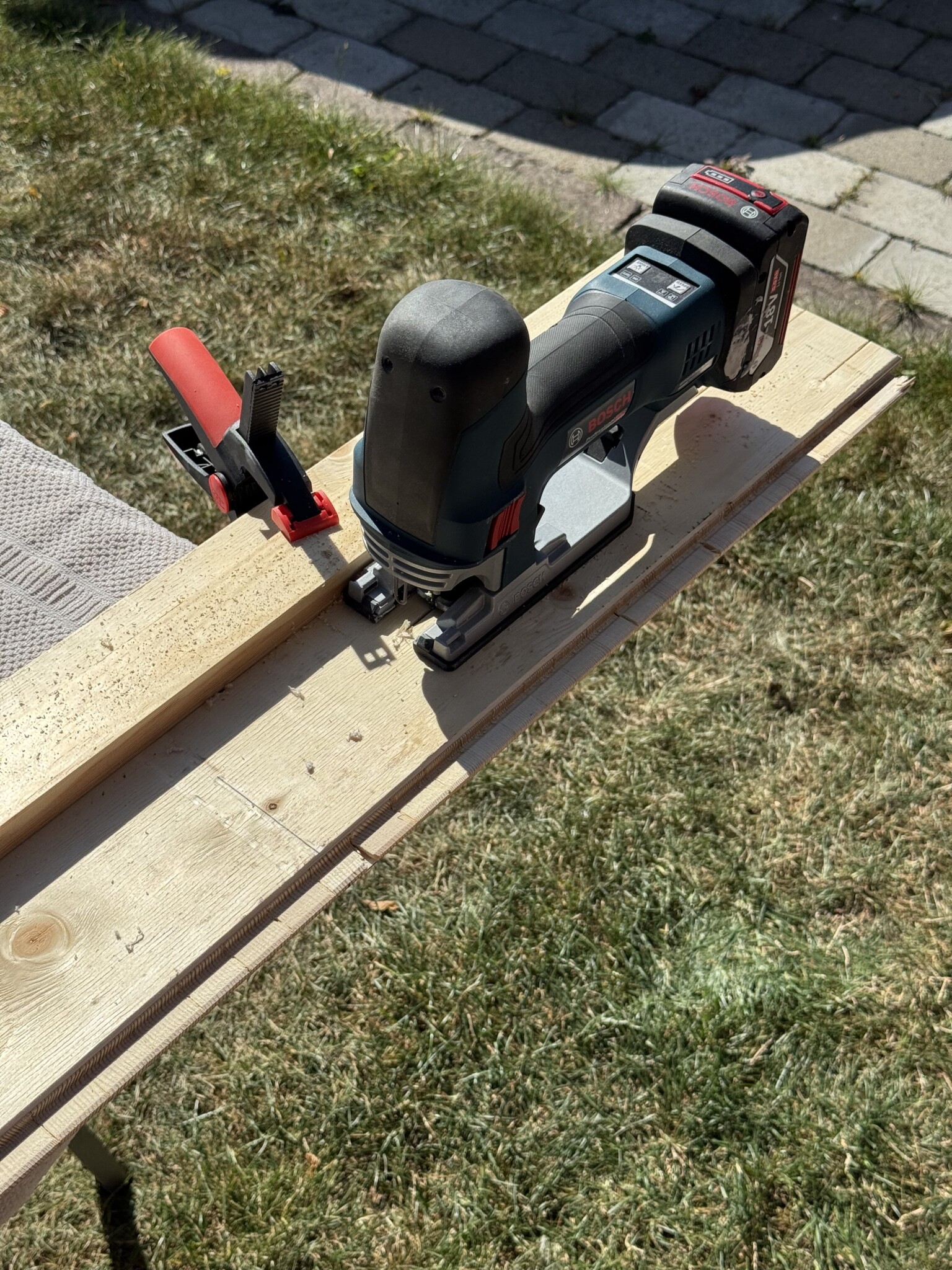 Jag klöv brädorna med sticksågen och kapade dom på längden med kap- och gersågen!