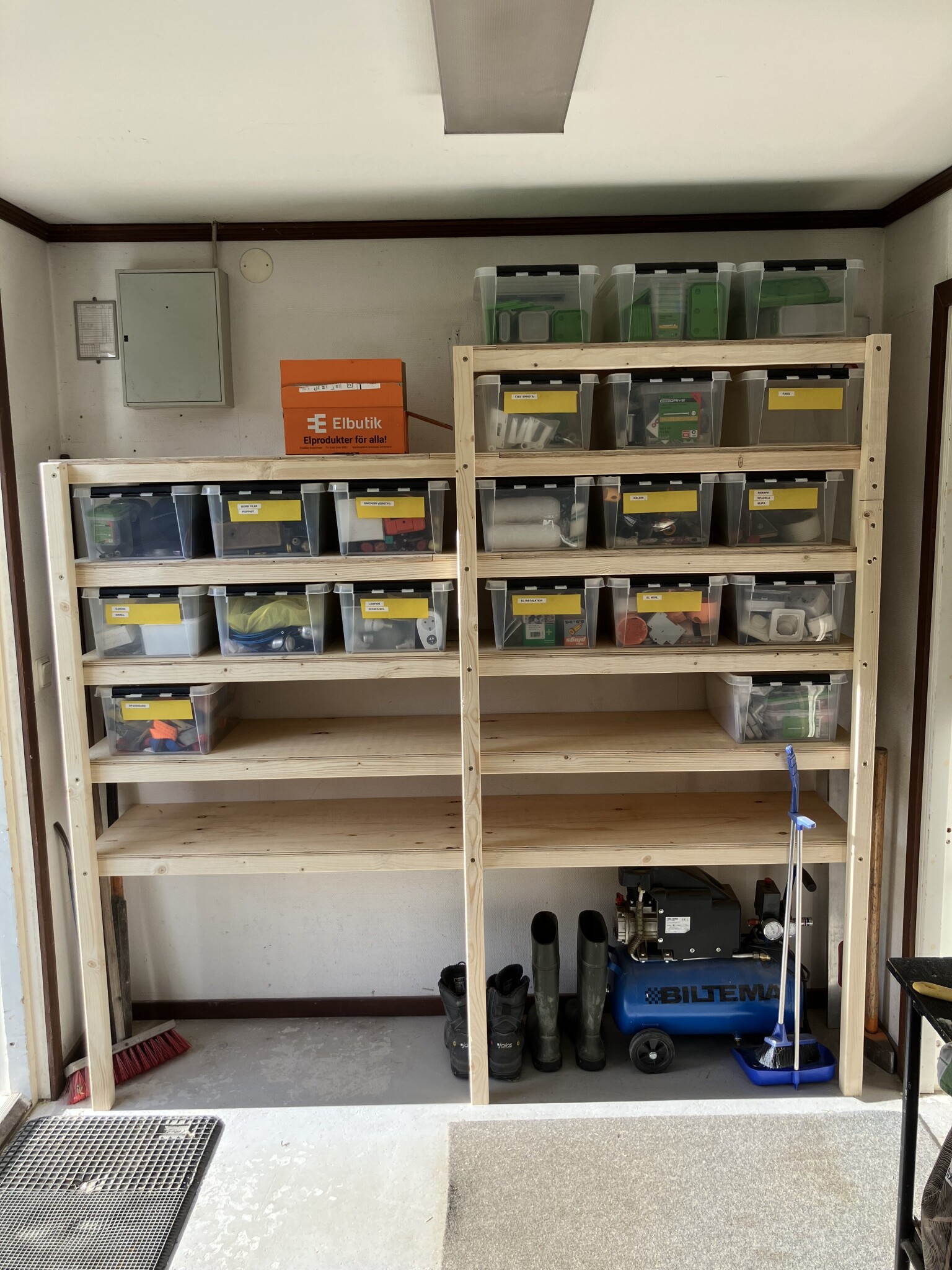 Byggt hylla i garaget.