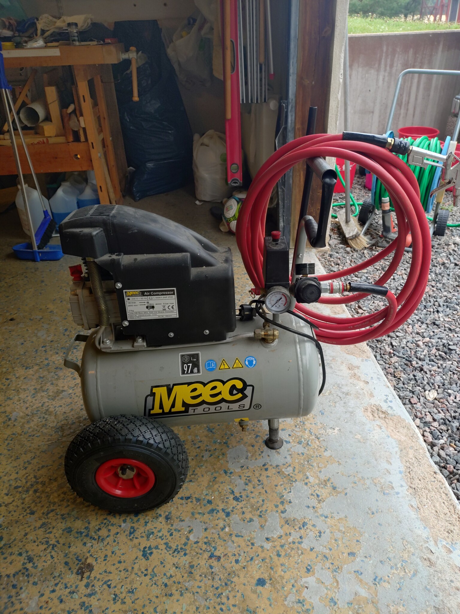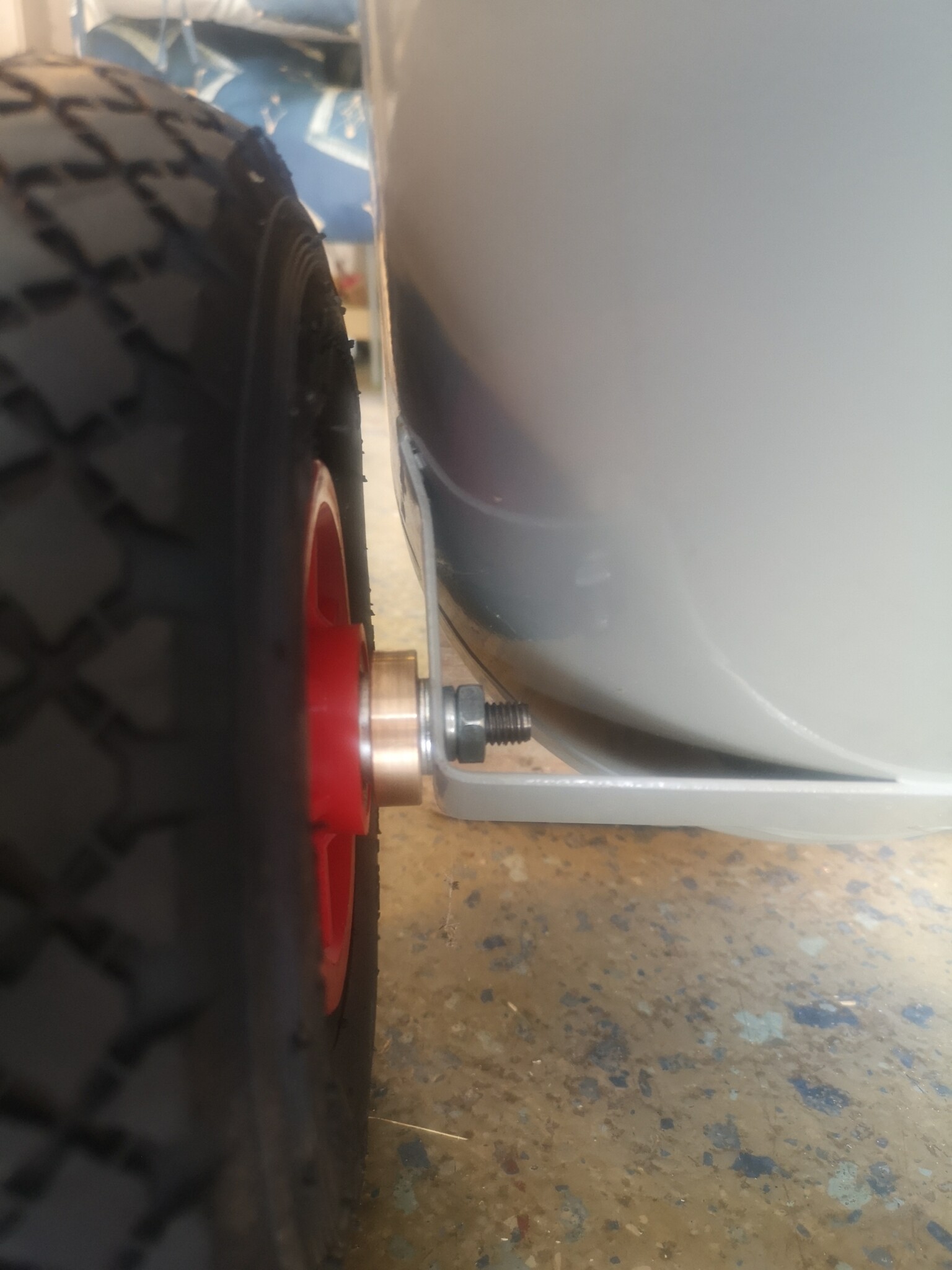 SvÀrfar svarvade ett par bussningar till hjulaxeln sÄ kompressorn kunde rulla lÀttare över gruset hemma