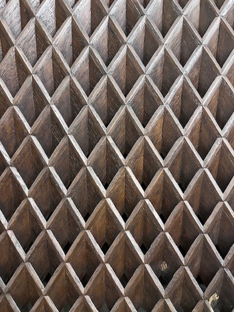 Om det är flera småbitar ihopsatta med spårfrästa långa bitar borde gå att se på ådringen i trät. Om det är gjort som kumiko också.T trycklös skrev:Spännande minnst sagt. Kyrka?