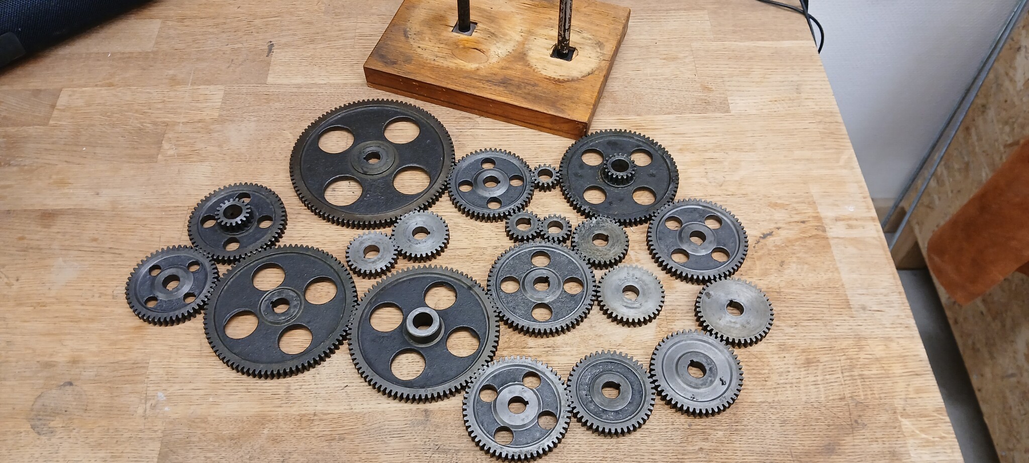 Det är som tur är inte en komplett samling för metriska gängor då den saknar några viktiga drev men det löser i princip alla tänkbara olika matningar, mängder med tum stigningar (om jag någonsin skulle behöva det) och om mina plastdrev skulle svika mig i framtiden så skulle det inte bli särskilt dyrt eller komplicerat att para ihop ett 100t med det 127 tandade och köpa ett eller två drev för att få en helt komplett sats som det var tänkt från början.