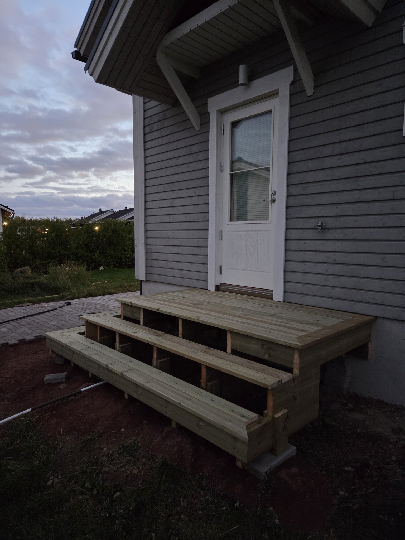 Högt och lågt idag. Sade hejdå till en älskad 4-bent familjemedlem på eftermiddagen, 11 år blev vovven. Så behövde tömma huvudet på kvällen och få dit lite steg på grovköksentréns trappa, som varit av modell lastpallar sen vi flyttade in för 8 år sedan.