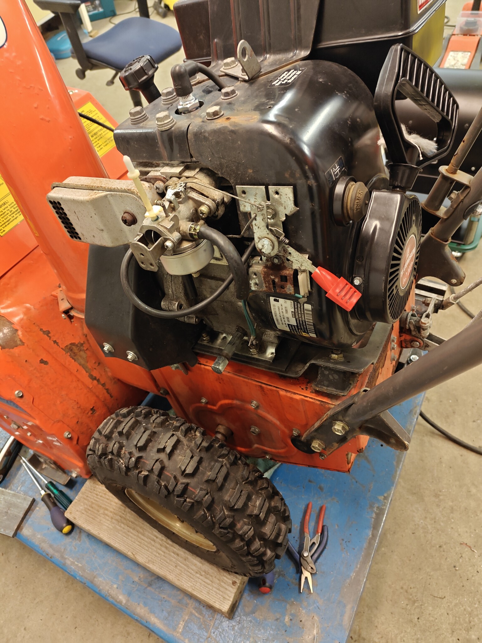 Snöslungan som inhandlades för 500kr förra vintern, som extraslunga, har stått sen dess. Men nu har den fått ett nytt däck och en renoverad förgasare. Lite justering så går den fint, får se hur den orkar med snön i vinter.