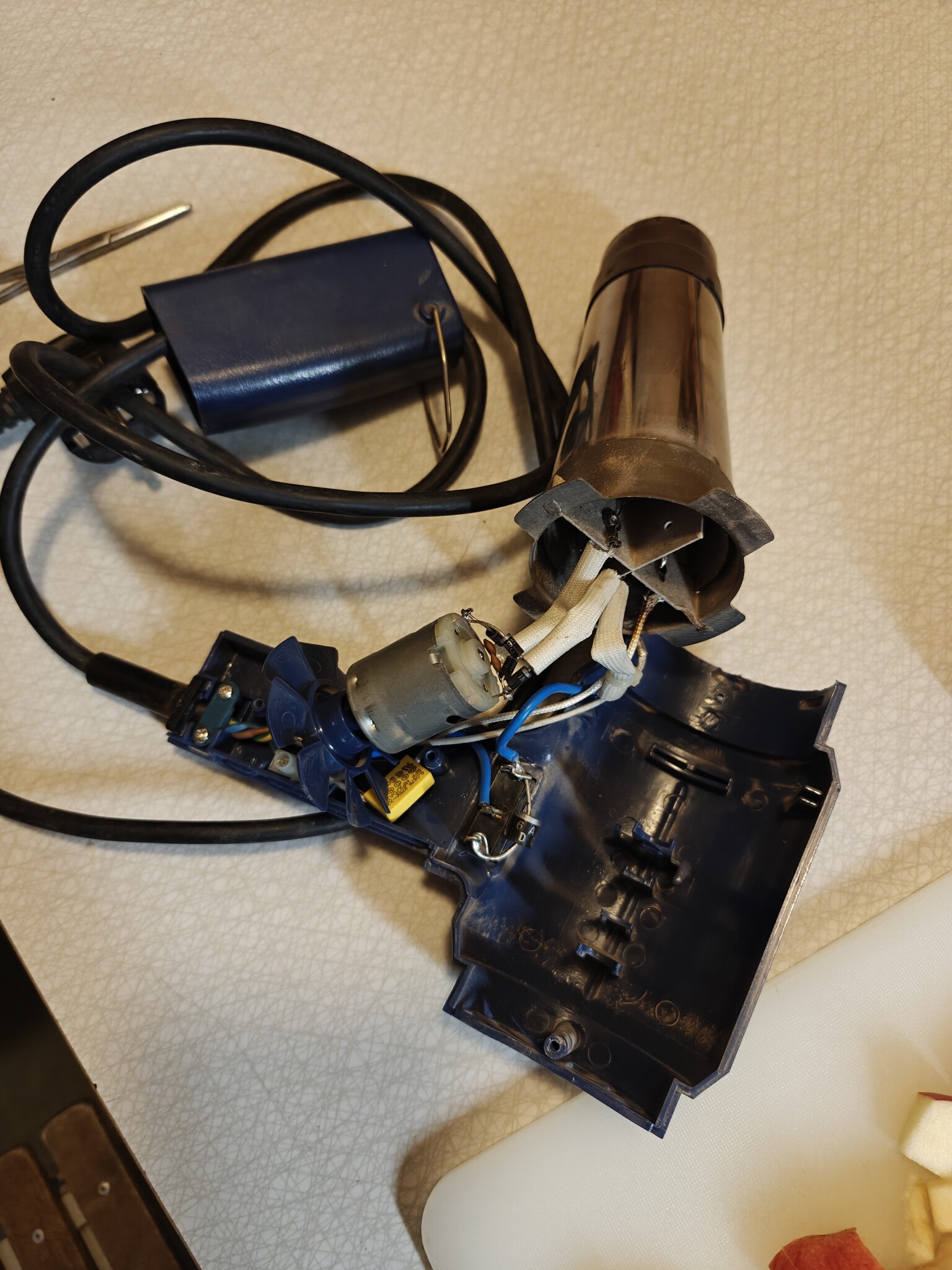 Bara att skruva isär, ser ju tydligt vart tråden bränt av. Bild två visar min eminenta lödning/skarvning..[bild]