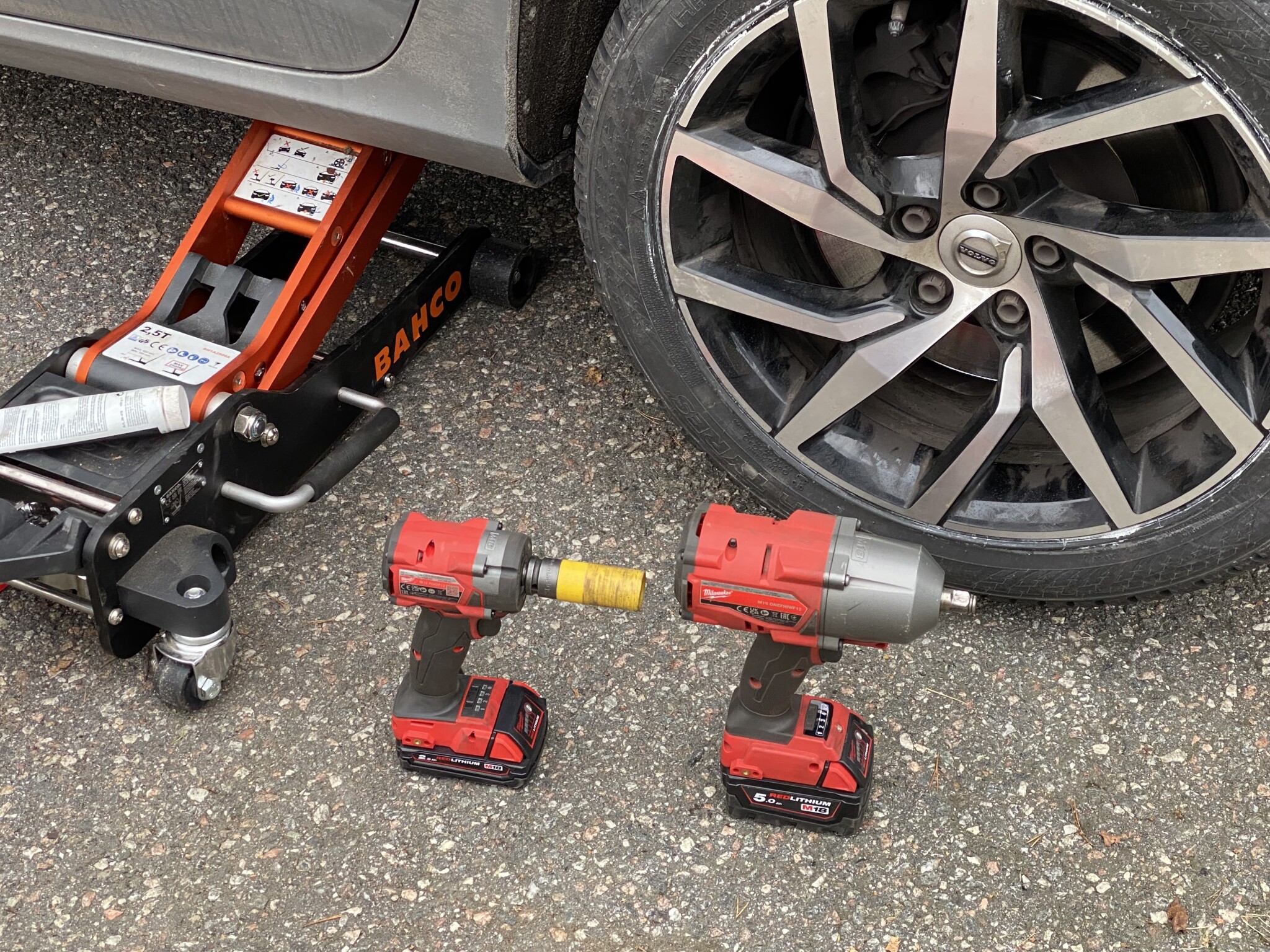 Imponerad över att den lilla maskinen klarade hjulskruvarna. Allihopa faktiskt. Jag jobbar enligt principen hoppas på det bästa - beredd på det värsta. Jag antar att jag hade behövt ta till den stora maskinen om jag hade haft bilen på verkstaden sedan förra bytet. Nu kom jag på att jag glömde att blåsa luft genom högtryckstvätten. Det ingår ju normalt i höstens hjulrutin.