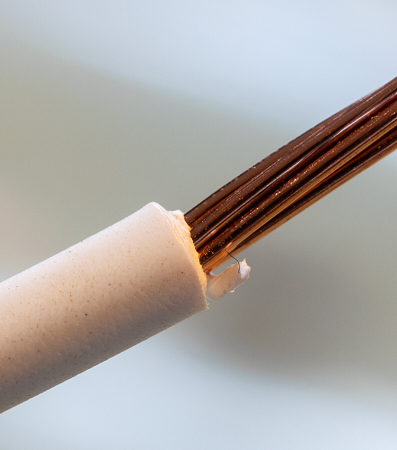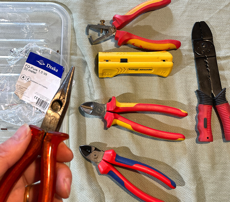 Vad kom jag fram till? Kabeln anges vara 1,5m² men varje skalning med tänger som har fasta lägen för 1,5 respektive 2,5m” ger små små skador på kopparn när jag använder 1,5 läget och det är inte svårare att skala med 2,5m löget. Jag tänkte att isoleringen skulle dras ut som ett tuggummi men icke.