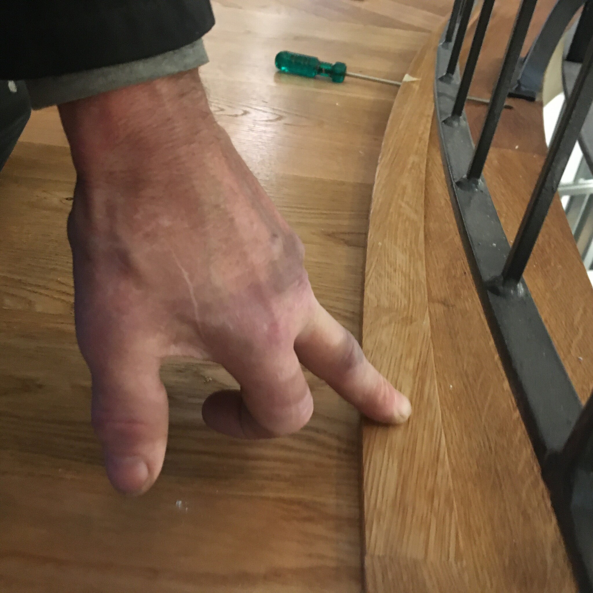 Monterat list. Visade sig att den runda formen mer var en tillrundad rektangel. Största radien var för liten. Minsta för stor. Listerna hade viss flexibilitet så arbetade mig runt genom att ta de lister som passade minst dåligt. Nåla fast skarven och några dm och sedan böja bit för bit. Gick hyfsat