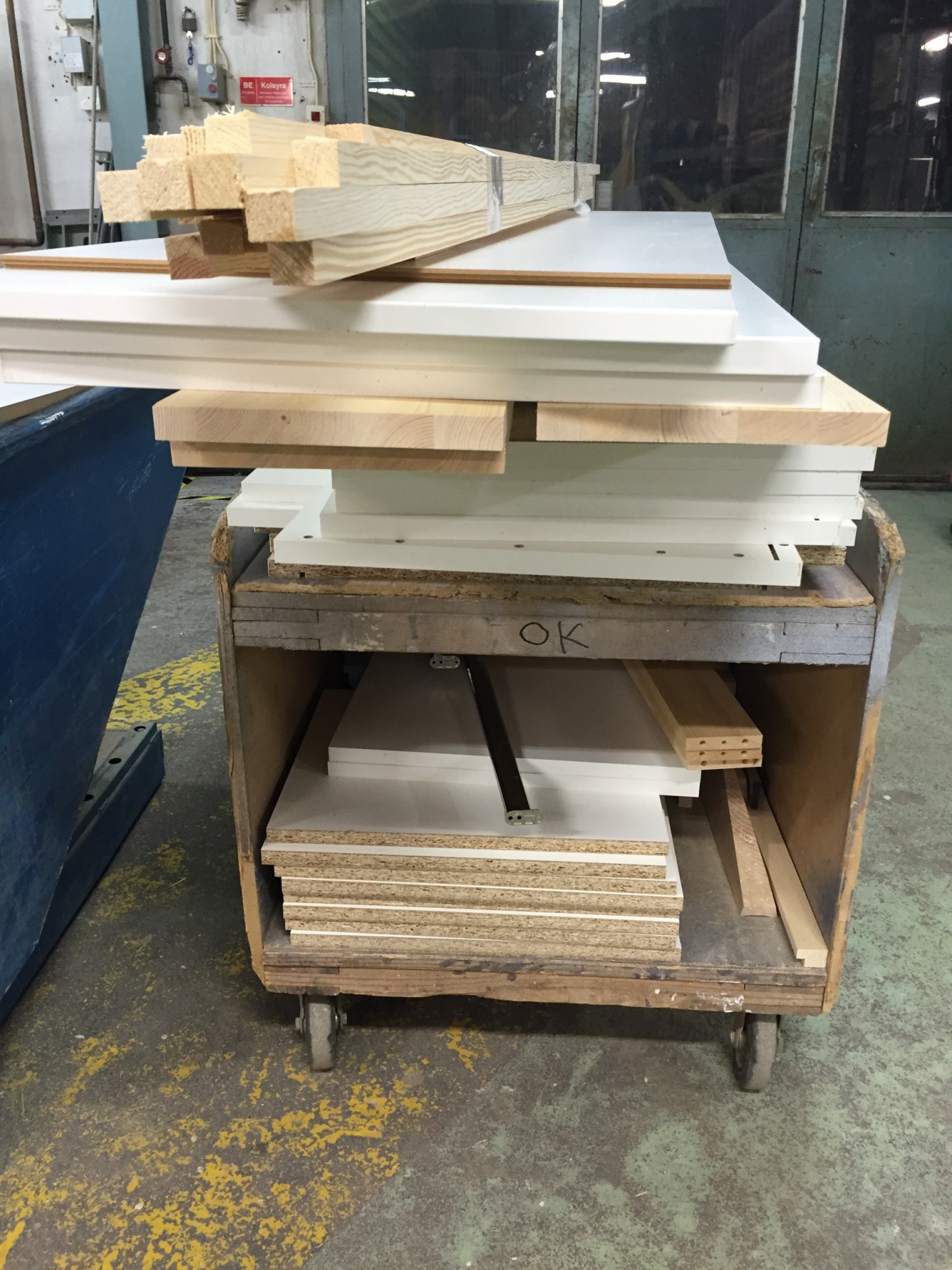 Varit hela eftermiddagen och kvällen i snickeriet för att slöjda i mitt favoritmaterial (inte) melaminbelagd spånskiva. Fördelen är ju att det är lättbearbetat och snabbjobbat. Stycka upp, programmera, formatera, borra, kantlista och sen montage.