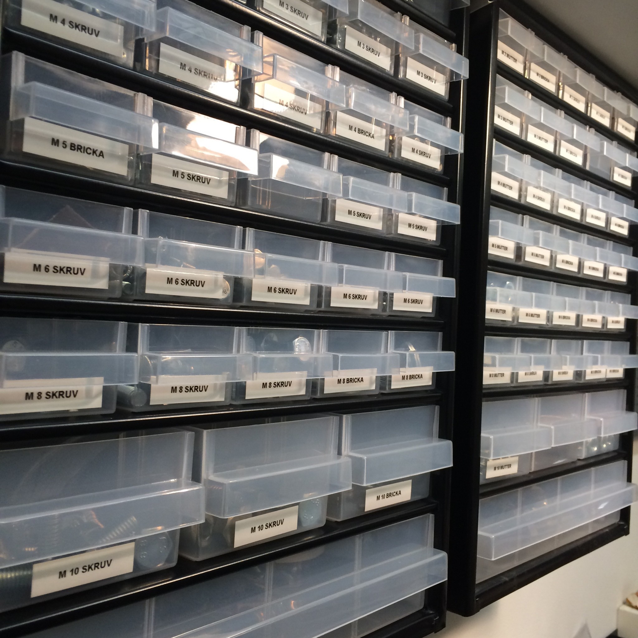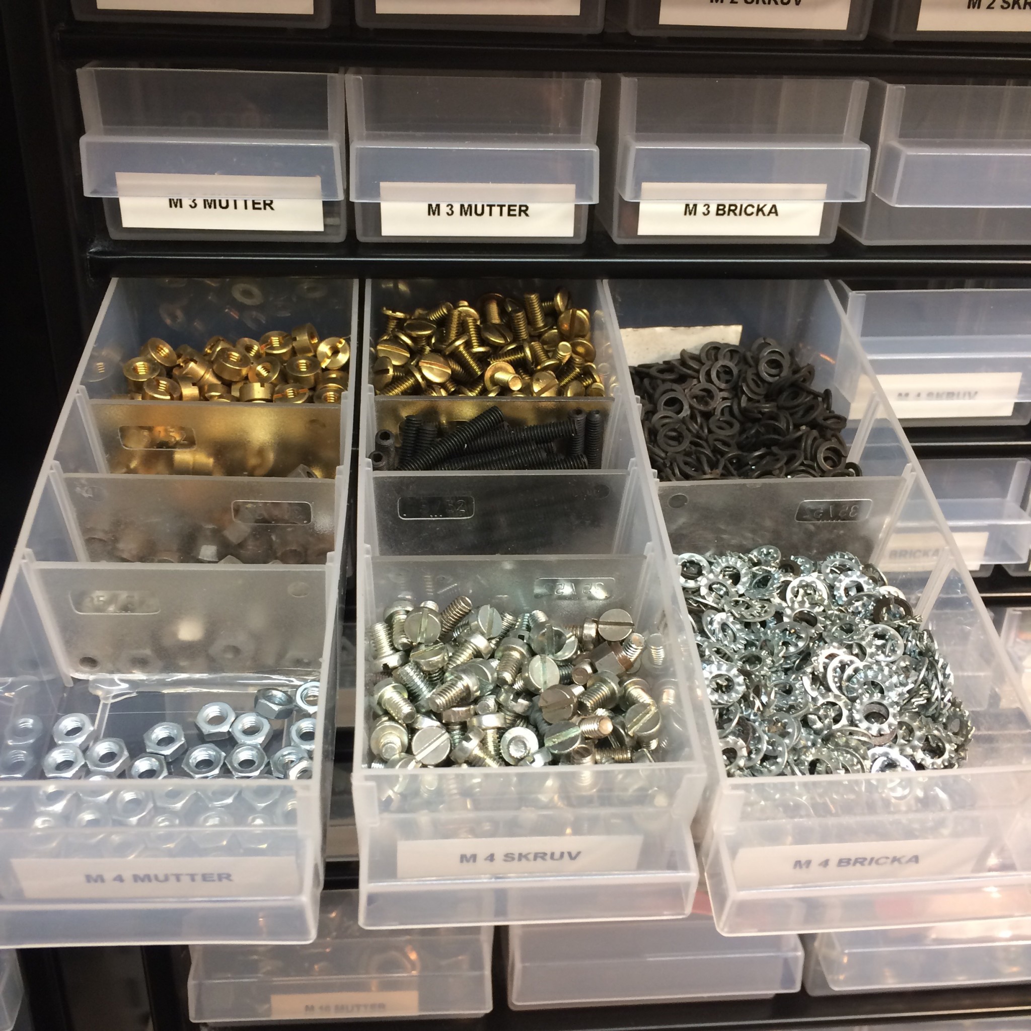 Märkt upp lite maskinskruv. För de små dimensionerna ned till M2 har jag skiljeväggar i lådorna som jag smältlimmat fast. Säkert fler än jag som råkat ut för Raaco lådor som kilat fast när smågrejjer kommer in under skiljeväggarna