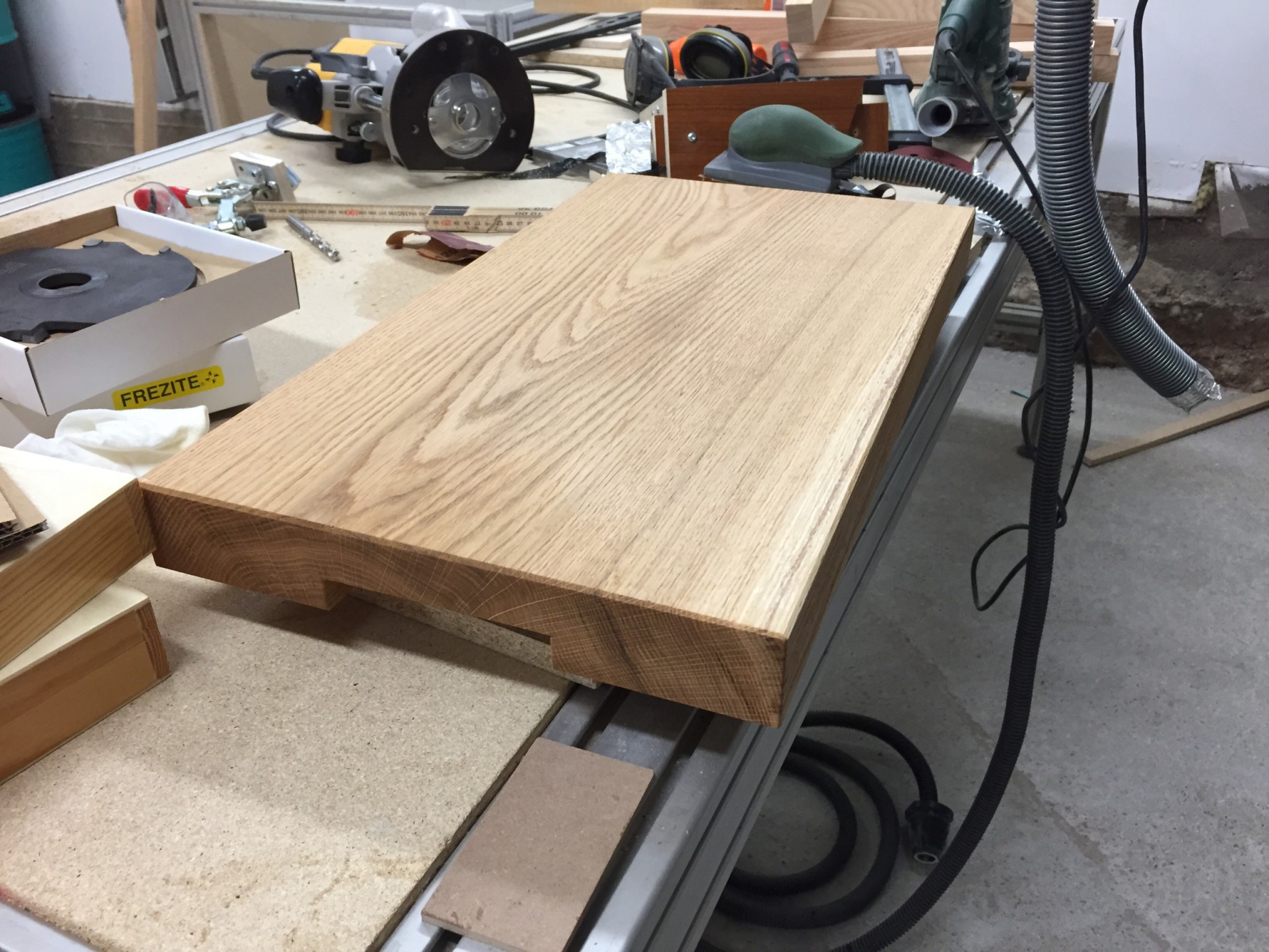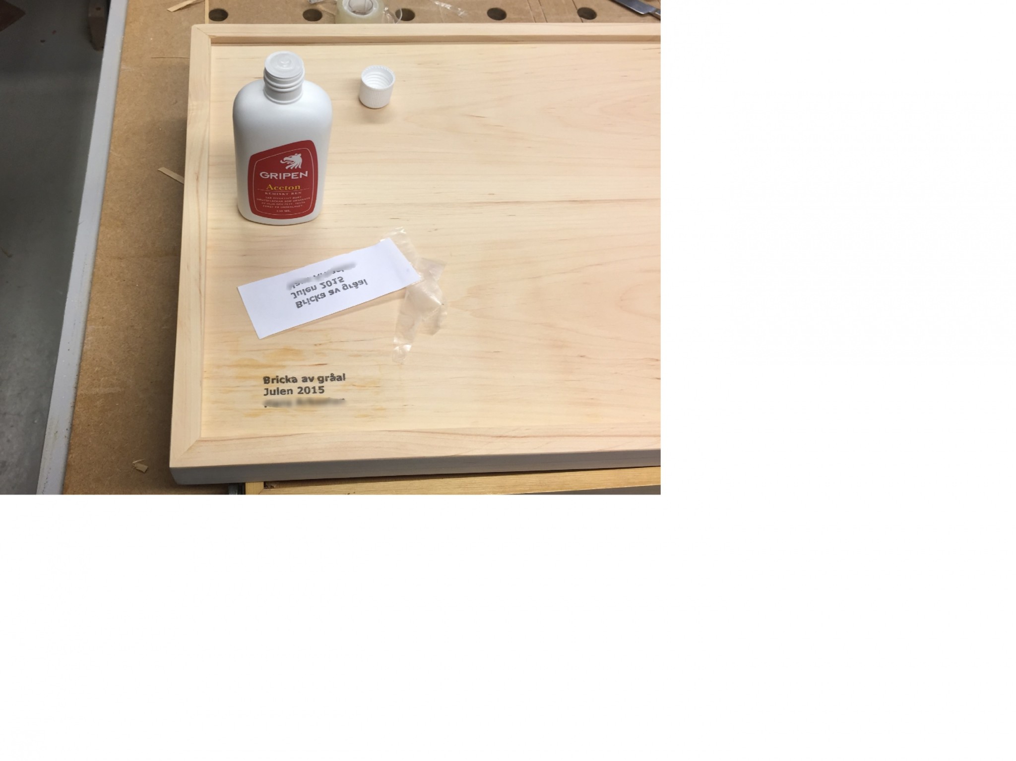 På tal om, här är skärbrädet jag limmade tidigare, fortfarande vått med linolja som det ska få dra i sig: